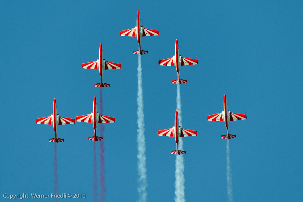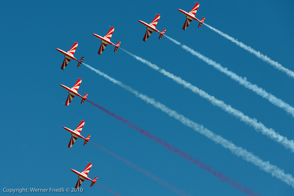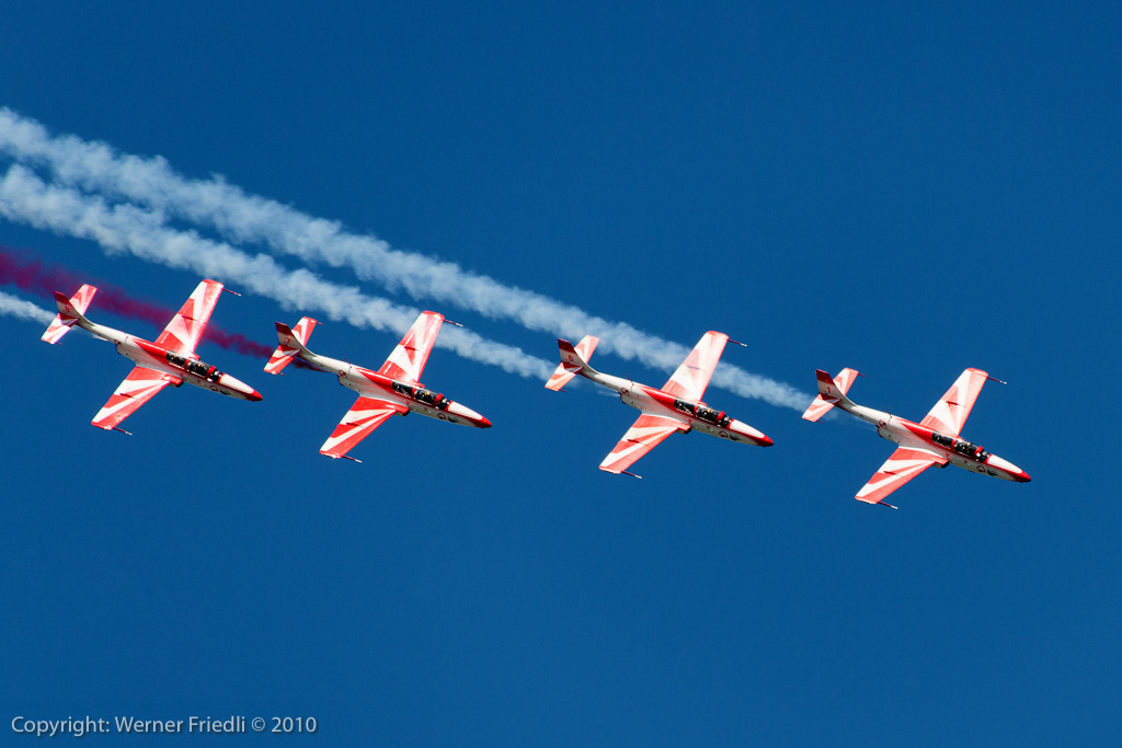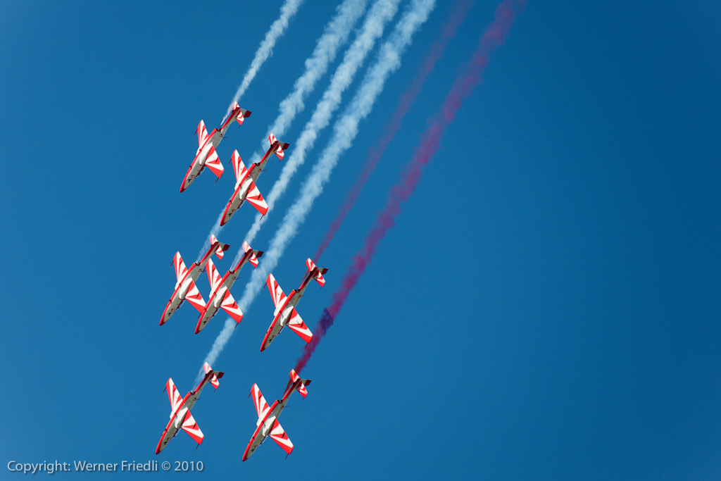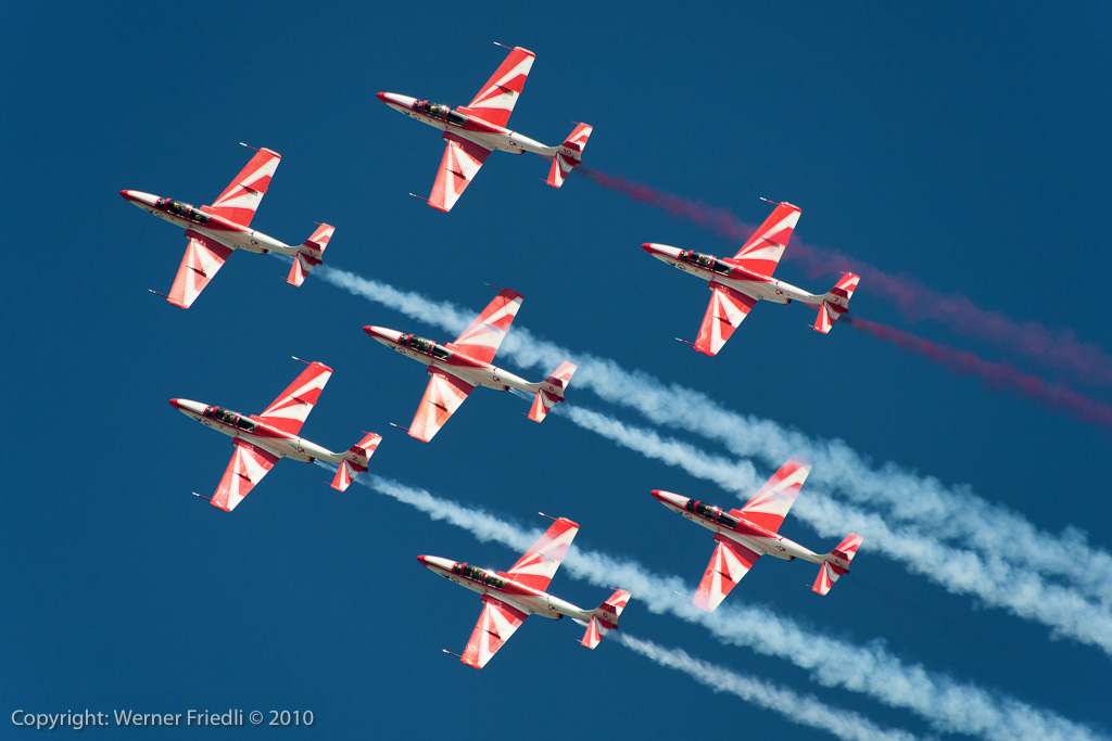 1989 wurde das Team auf sechs Maschinen vergrössert, 1993 sogar auf deren neun. Im Jahre 2000 wurde das Kunstflugteam auf seine jetzige Homebase Deblin im Osten von Polen verlegt. Seit dieser Zeit sieht man das Team in unregelmässigen Abständen auch im Ausland an grossen Airshows. Die Vorführungen werden mit sieben Maschinen geflogen, wobei eine Ersatzmann immer bereit steht. Zum Einsatz kommt die PZL TS-11 Iskra, welche 1960 als zweisitziger Strahltrainer für die Schulung von zukünftigen Militärpiloten konstruiert wurde. Die Vorführung des Teams muss man mehr mit den Augen als mit den Ohren geniessen, denn das Triebwerk der Iskra ist sehr diskret und leise.