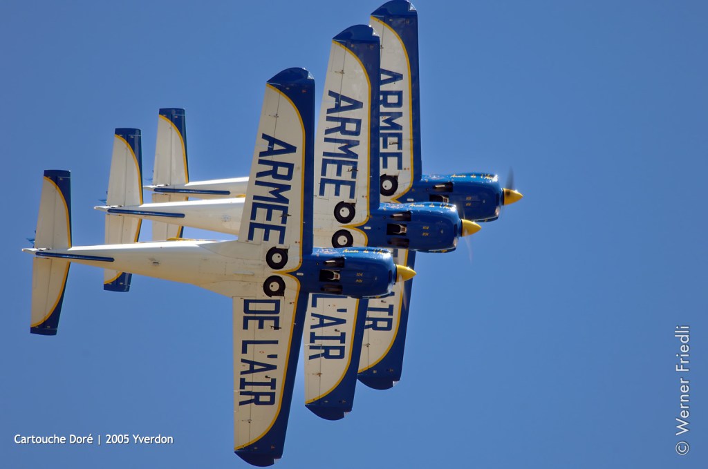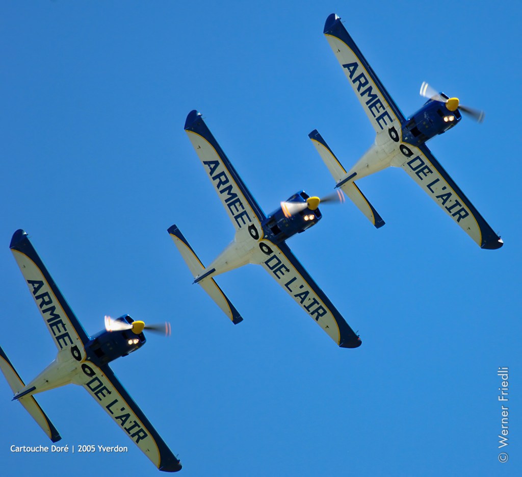 Die Patrouille Cartouche Doré trat zum ersten Mal am 2. Juni 1989 auf dem Luftwaffenstützpunkt 709 in Cognac auf. Die TB 30 Epsilon der Armée de l’air feierten ihre 100.000 Flugstunde. Diese Flugzeuge waren von 1984 bis 2019 an der Fliegerschule der Luftwaffe (EPAA) im Einsatz und ersetzten die CM170 Fouga Magister.