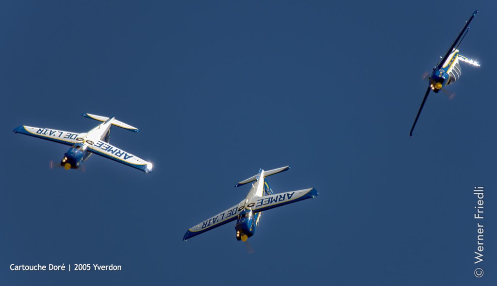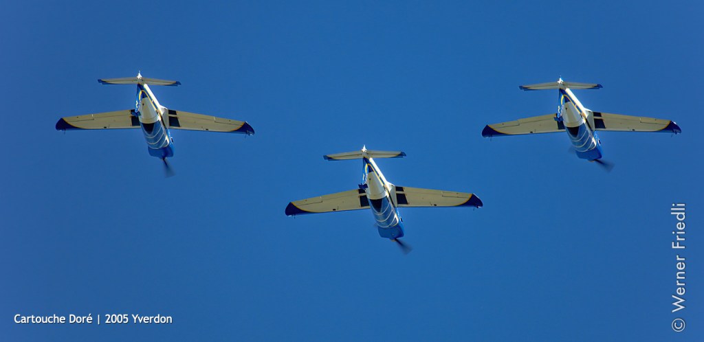 Bei dieser Gelegenheit bildeten die Leutnants Paul-Guy Maneval, Dominique Crochard und Albert Pouzoulet eine Patrouille. Ihre drei TB 30 Epsilon waren schwarz-gold. Da „Cartouche“ das Funkrufzeichen der Staffel war, die sie einsetzte, und „Doré“ das der Patrouille, wurde ihr Taufname einstimmig auf „Cartouche Doré“ festgelegt. Diese Formation war ursprünglich für eine kurzlebige Karriere gedacht, da sie im April 1989 eigens für diesen Zweck gegründet wurde. Der Erfolg war so groß, dass sie nach ihrer Rückkehr hinter die Kulissen anlässlich der Taufe der Jahrgänge in der BA 701 in Salon-de-Provence um eine „Zugabe“ gebeten wurde.