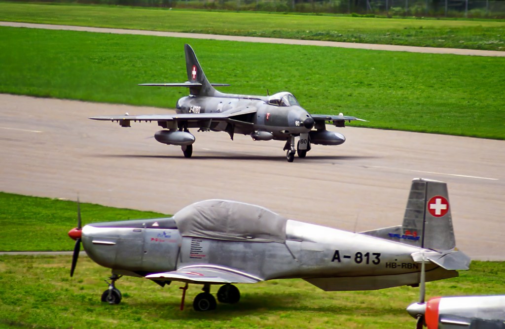 Die Amici dell’Hunter konnten an der Ambri Alpine Airshow 1995 den Hawker Hunter HB-RVT (ex J-4080) das erste Mal in der Luft präsentieren.