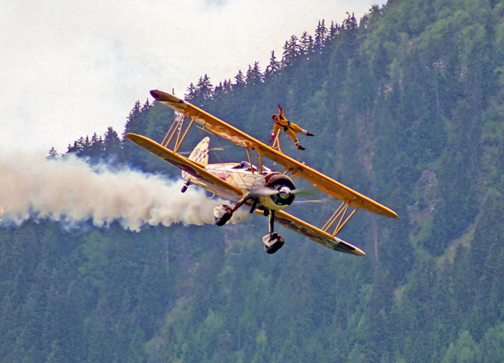 Mit Show-Effekten glänzte die Vorführung des Crunchies Flying Circus mit zwei Doppeldeckern des Typs Stearman.