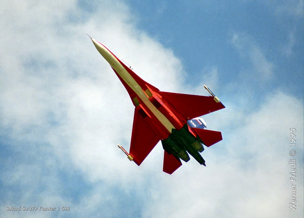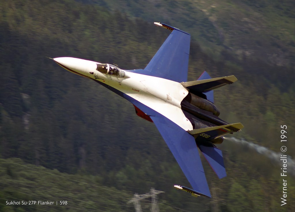 Die lauteste und eindrücklichste Demonstration war indessen dem russischen Düsenjäger Sukhoi Su-27P Flanker vorbehalten. Testpilot Anatoly Kvochur zeigte wieder einmal, was in der Su-27 steckt. Nicht fehlen durfte natürlich auch das Kobra-Manöver.