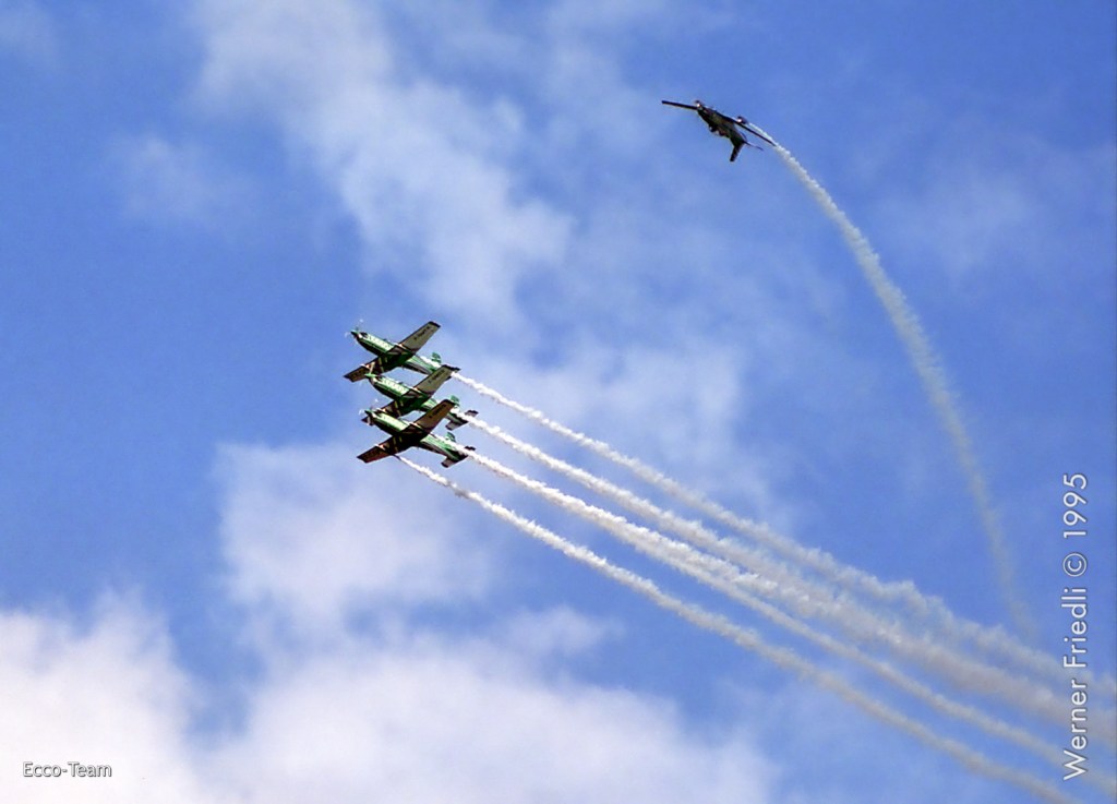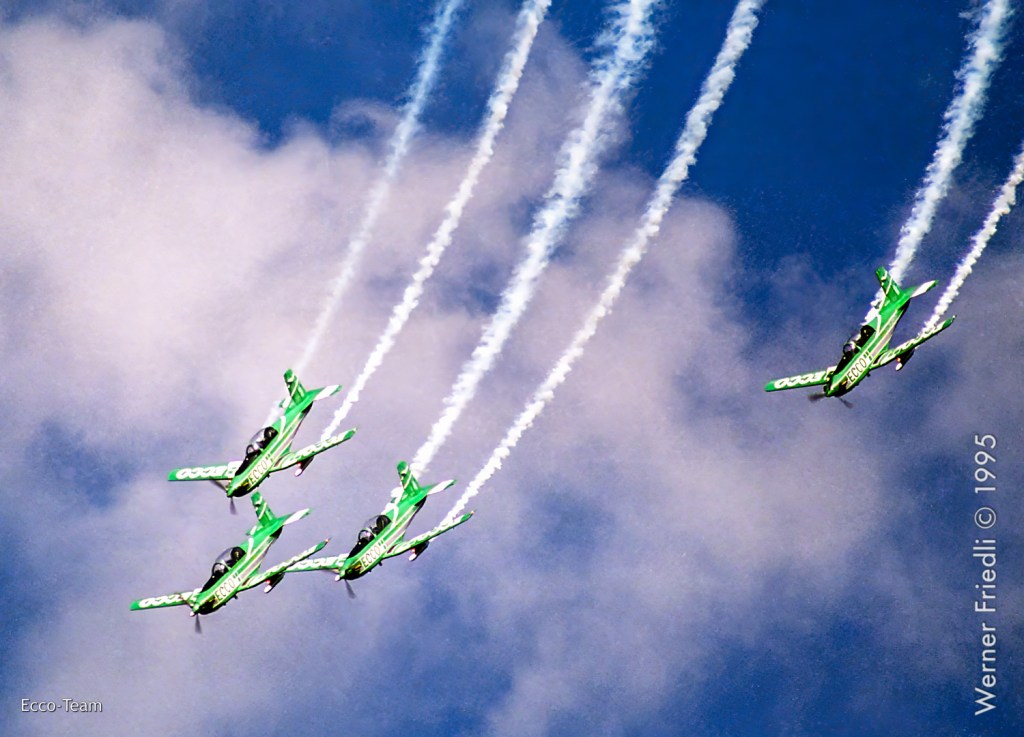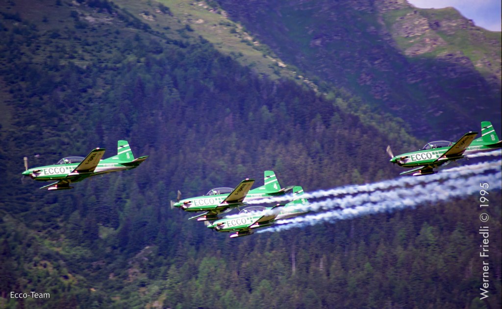 Die Vorführungen des Ecco-Teams mit vier PC-7 waren wie immer präzise und die Choreographie durchdacht. Das Team flog von 1991 bis 1997 mit der Unterstützung des Arbeitsvermittlers Ecco. Teamleader war Jacques Bothelin, der über weitere Stationen schlussendlich das Breitling Jet Team anführte.