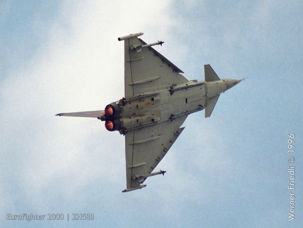 Der Eurofighter, der später den Namen Typhoon erhielt, feierte in Farnborough sein Debüt, noch als Prototyp, sollte aber schliesslich zum Hauptbestandteil der Luftverteidigung der Royal Air Force werden.
