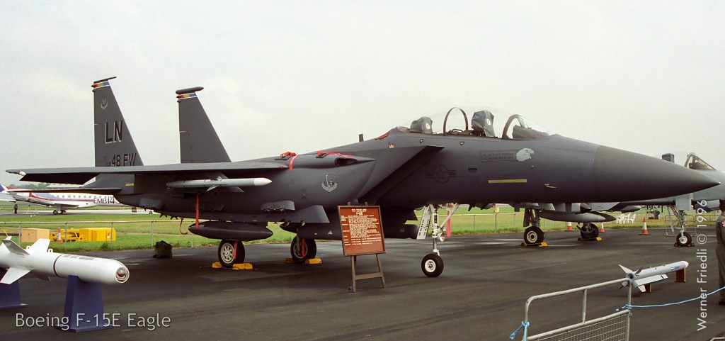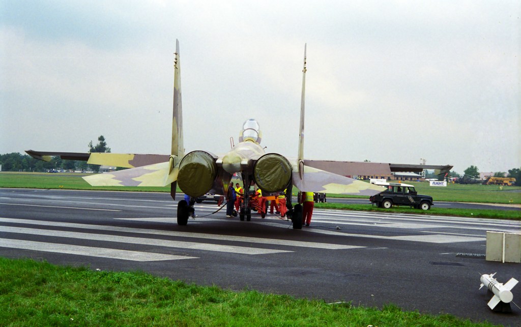 Der Stealth-Bomber Northrop-Grumman B-2A Spirit flog am Eröffnungstag der Ausstellung 1996 direkt von seinem Stützpunkt in den USA aus vorbei. Für viele war es das erste Mal, dass sie diesen Typ zu Gesicht bekamen, nachdem sie in der Presse so viel darüber gehört hatten. Ich war am ersten Tag leider nicht anwesend und verpasste so diese Gelegenheit.