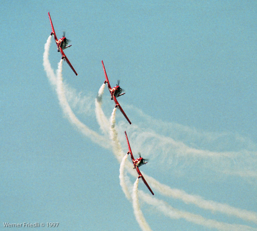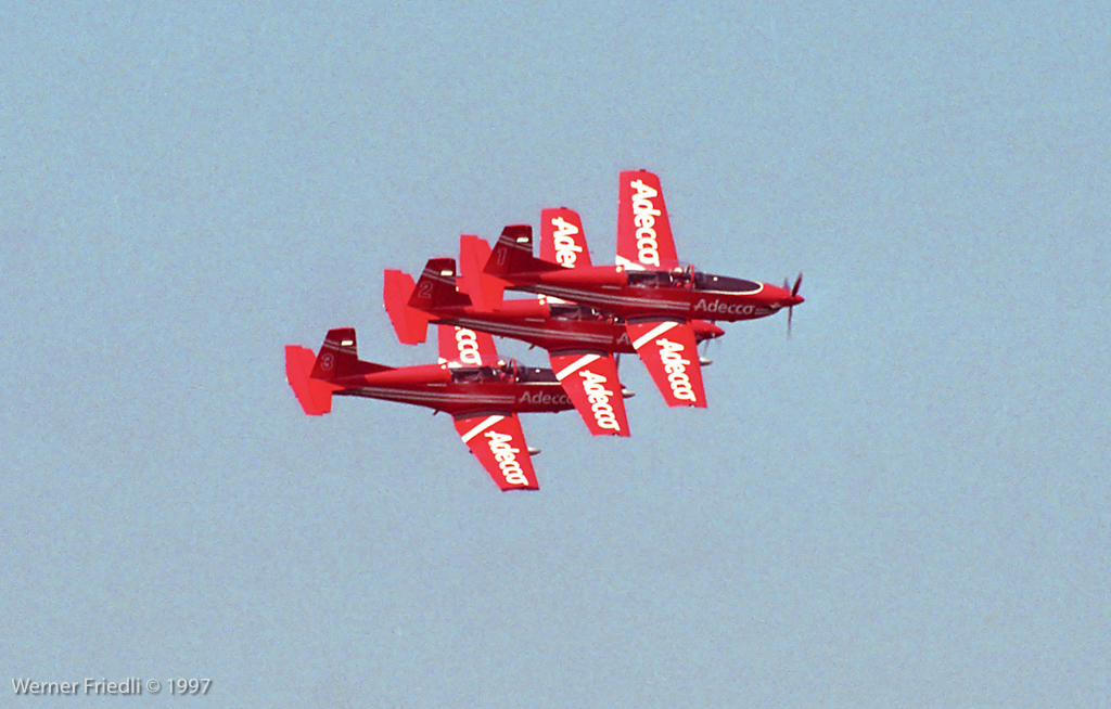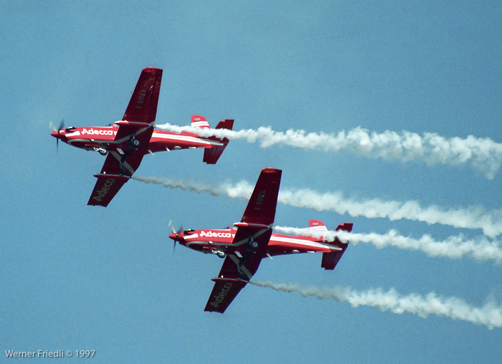 Beeindruckend waren auch die Vorführungen der Teams Malev-Aerotriga auf Zlin 50LS und Patrouille Adecco auf Pilatus PC-7.
