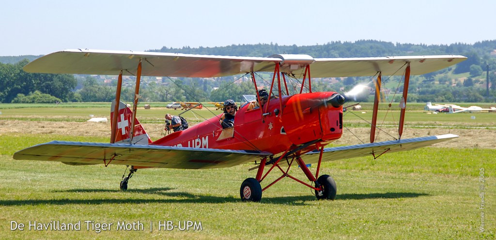 | HB-UPM | DH-82 Tiger Moth | DHNZ135 | 1940 |