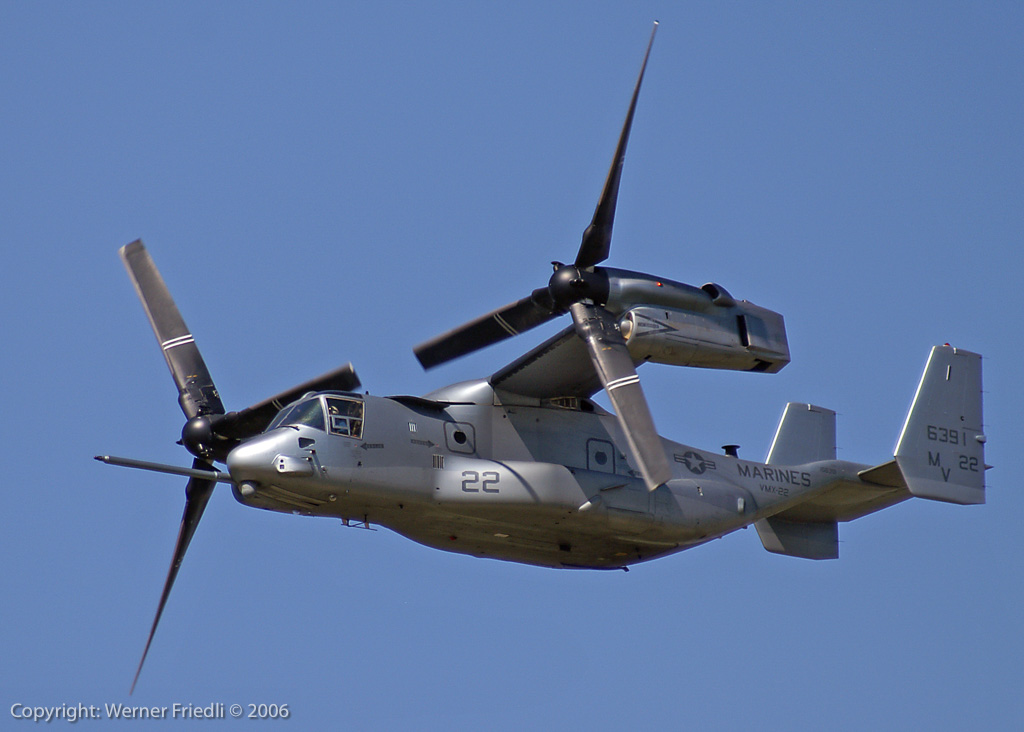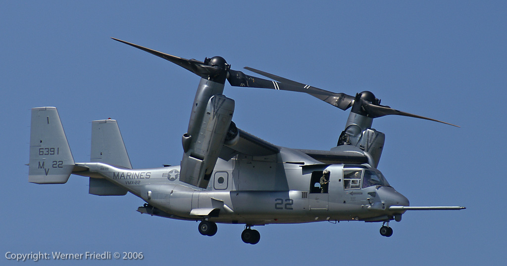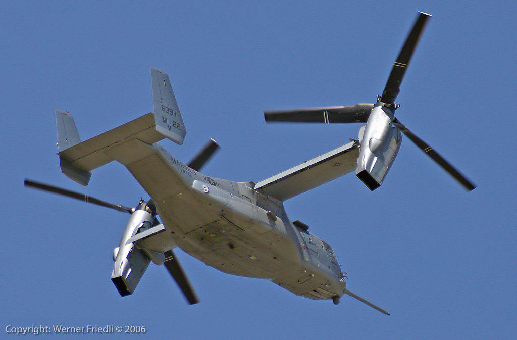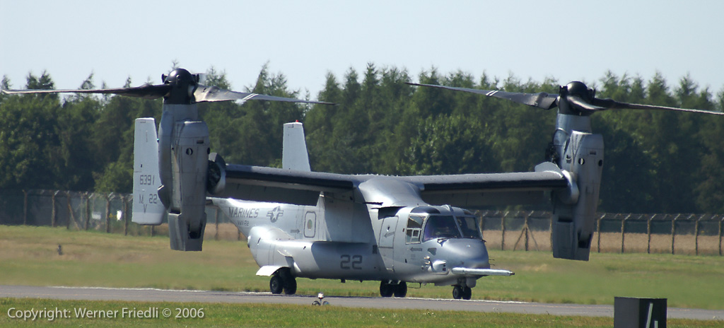 Auch im Jahre 2006 herrschte Kaiserwetter in Fairford. Eine sehr abwechslungsreiche Show wurde geboten, mit einem Star, der in Europa noch nicht zu sehen war. Die Bell/Boeing MV-22B Osprey hatte ihren ersten grossen Auftritt und konnte das Kipprotorprinzip eindrucksvoll demonstrieren. Obwohl es bei der Entwicklung der Maschine einige herbe Rückschläge gab, so unter anderem auch mehrere Abstürze, war man doch von den Fähigkeiten des Flugzeugs überzeugt. Neben den Flugeigenschaften verblüffte vor allem auch die sehr diskrete Lärmentwicklung.