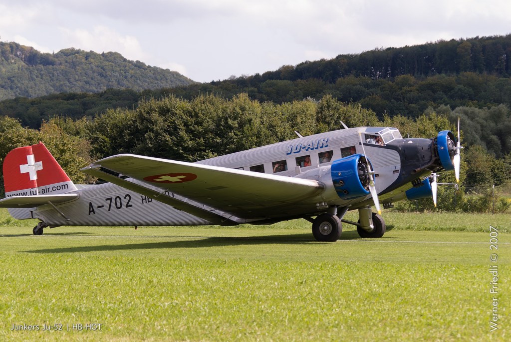 | HB-HOT | Junkers Ju-52 | 6595 | Baujahr: 1939. Absturz am 4. August 2018 beim Piz Segnas. |