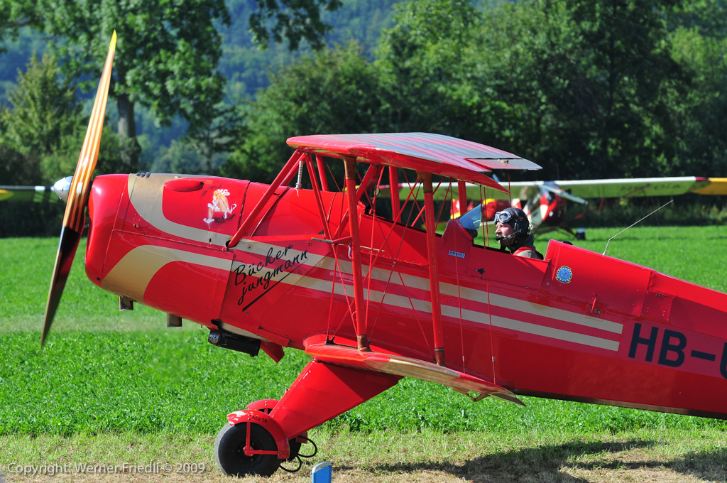 Im Zentrum der Veranstaltung stand der Bücker Jungmann. Vor 75 Jahren, am 27. April 1934, startete Testpilot Joachim Köppen in Berlin-Johannistal zum ersten Mal mit dem zweisitzigen Doppeldecker. Aus Anlass dieses Jubiläums fand in Kestenholz ein internationales Bückertreffen statt. Es konnten denn auch zwischen 30 und 40 Bücker in der Ausstellung gezählt werden, neben Schweizer Immatrikulationen waren auch solche aus Deutschland, England und Oesterreich zu finden.