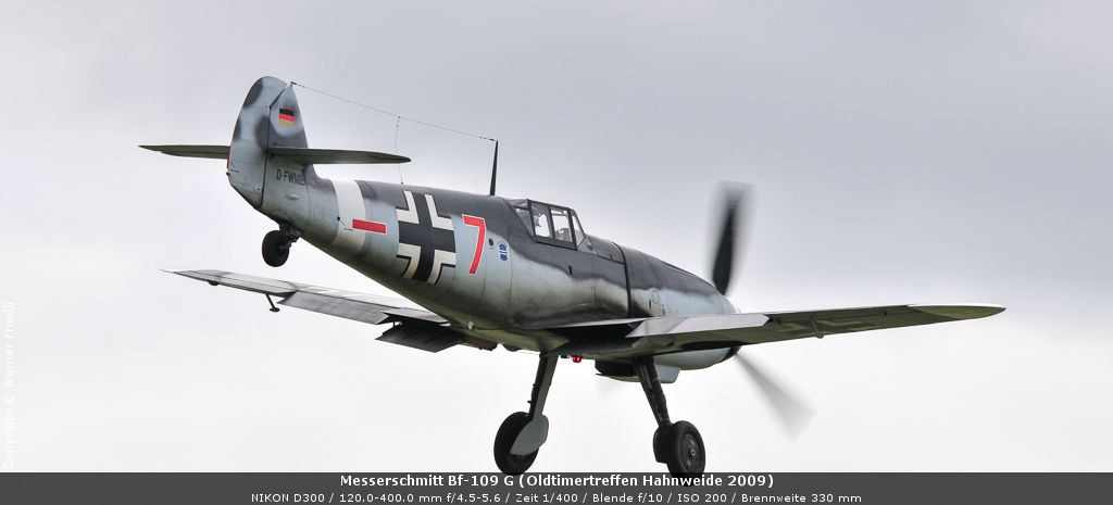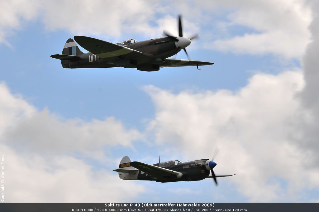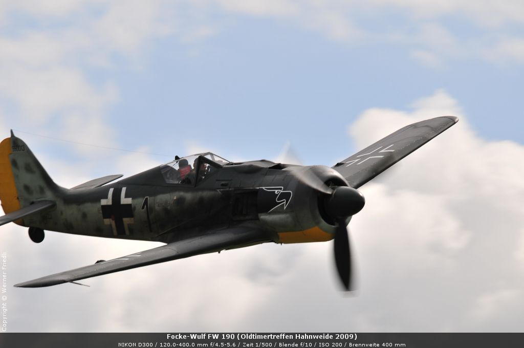 Das Programm der Hahnweide 2009 war top und nur so mit spektakulären Flugzeugen gespickt. Sehr speziell war, dass an einem Flugtag sowohl eine Messerschmitt Bf-109 wie auch der Nachbau einer Focke-Wulf 190 zu sehen war. Aber auch sonst kamen die Fans von Warbirds voll auf ihre Kosten. Spitfire, Fury, Hurricane, Mustang, Avenger, Rata, Bf-109, Fw-190, Skyraider, Warhawk und vieles mehr waren zu sehen.