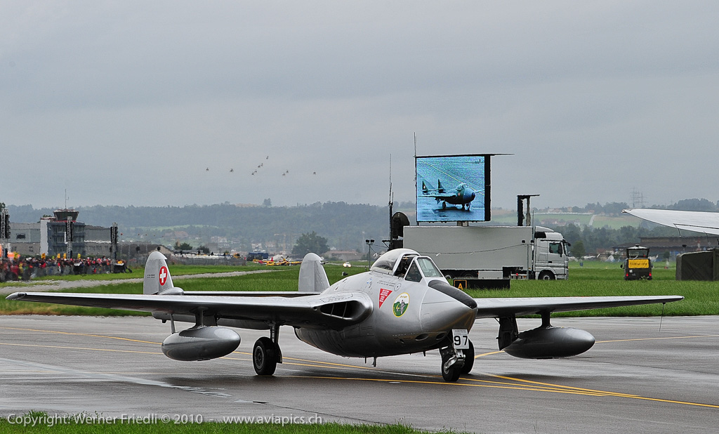 45’000 Zuschauer besuchten das Flugmeeting im Emmen. Die Schweizer Luftfahrt feierte ihr 100-jähriges Jubiläum, und die Luftfahrtbegeisterten strömten trotz des schlechten Wetters auf das Gelände des Flugplatzes Emmen.