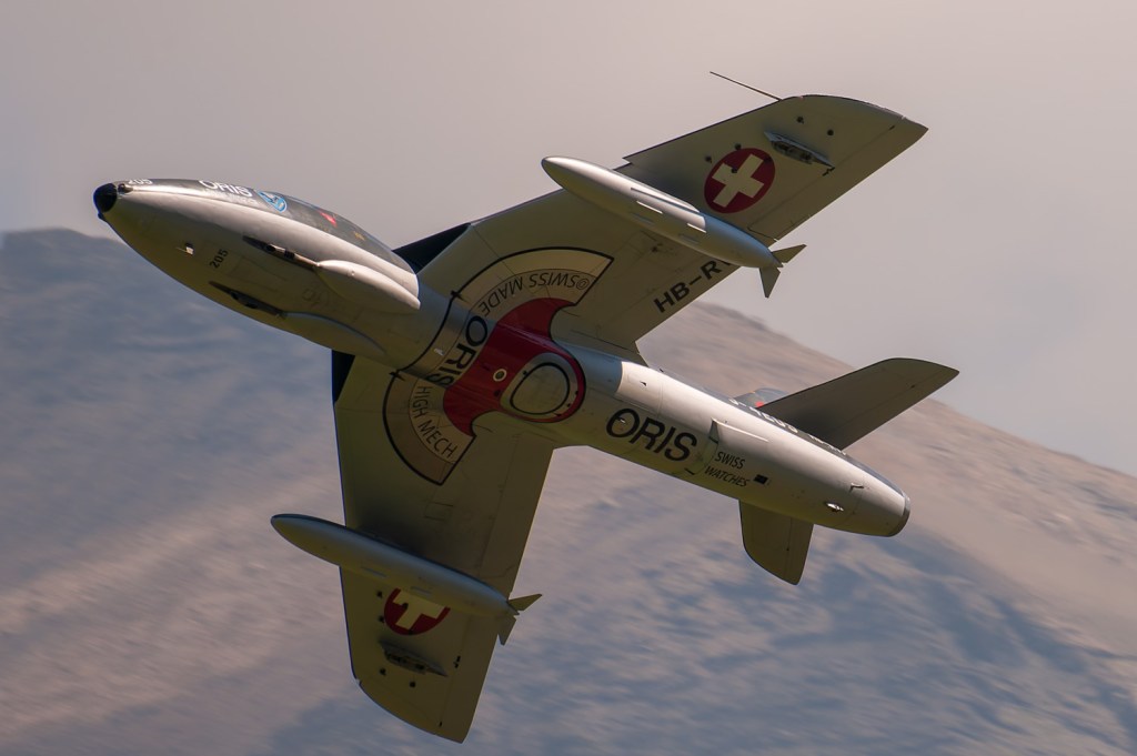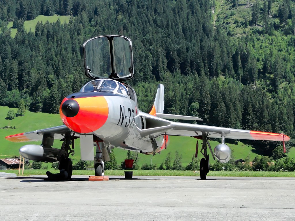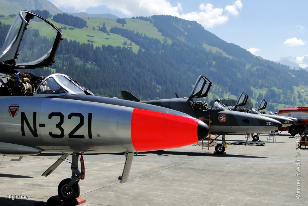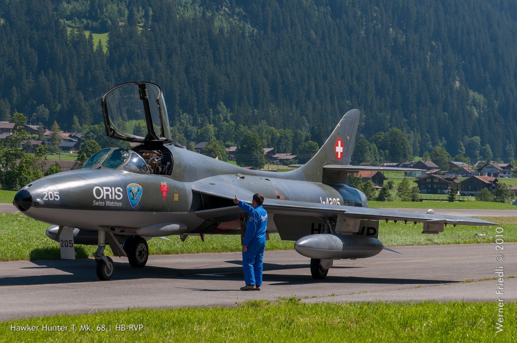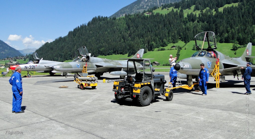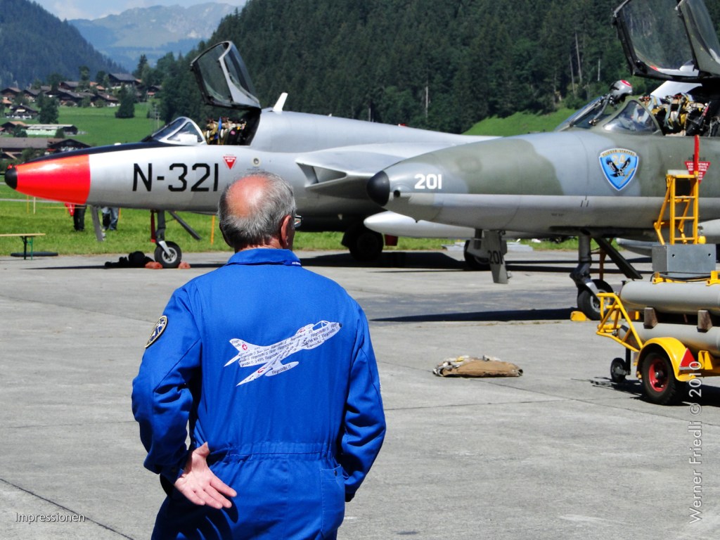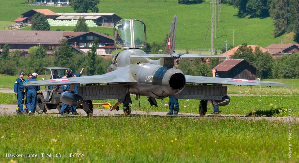 Natürlich war auch wieder der schönste Hunter der Schweiz zu sehen, der Papyrus-Hunter des Huntervereins Obersimmental. Nicht im Flug, aber dafür im Hangar des ehemaligen Reduit-Flugplatzes.