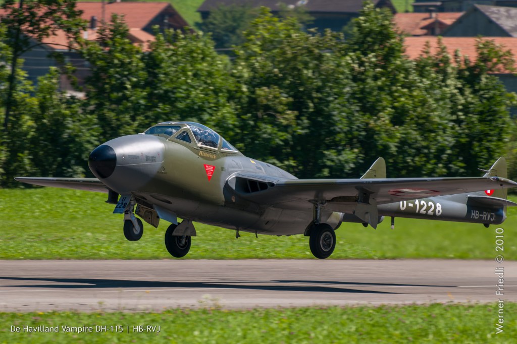 | HB-RVN | Chardonnens, Eric | DH-100 Vampire | 706 | Jg. 1952 / aktiv |