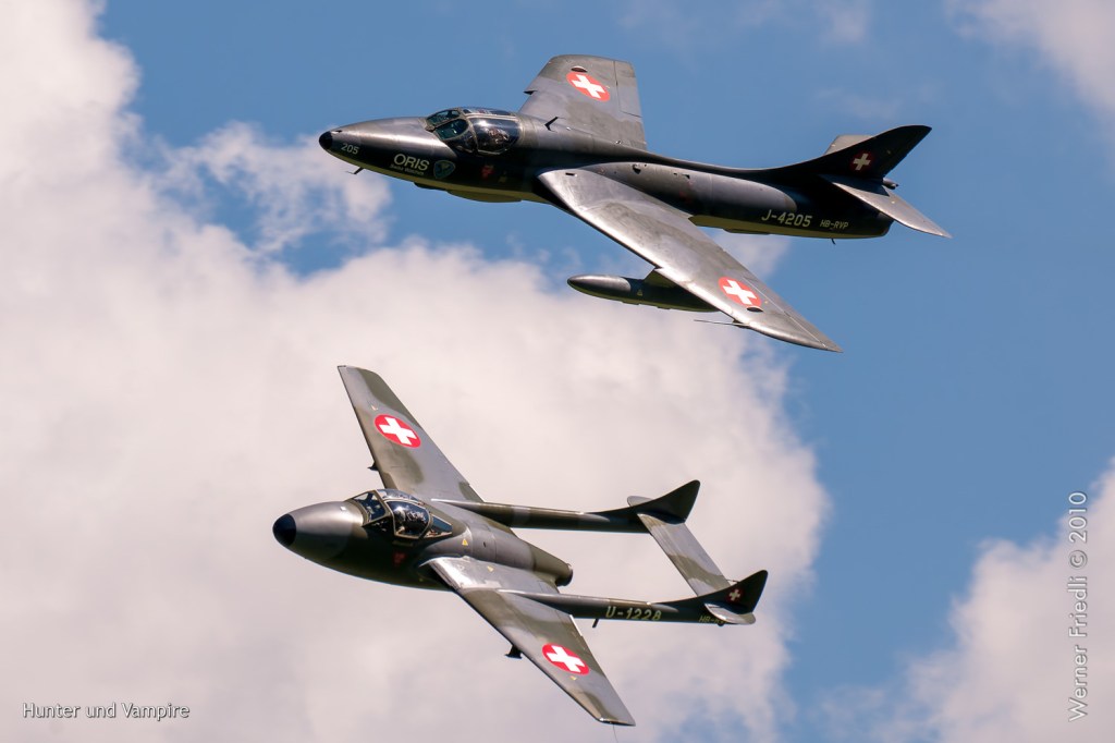 Insgesamt drei Hawker Hunter und zwei de Havilland Vampire waren am Boden und in der Luft zu sehen. Dazu kam noch ein Hawker Hunter der Dutch Hawker Hunter Foundation in den Farben der niederländischen Luftwaffe.