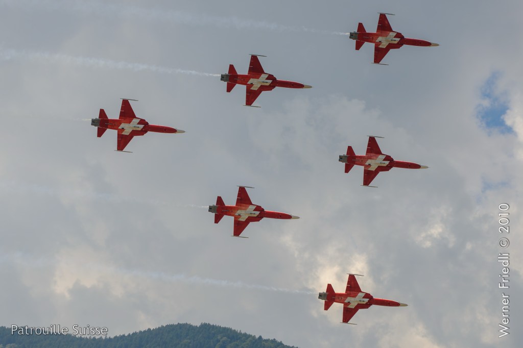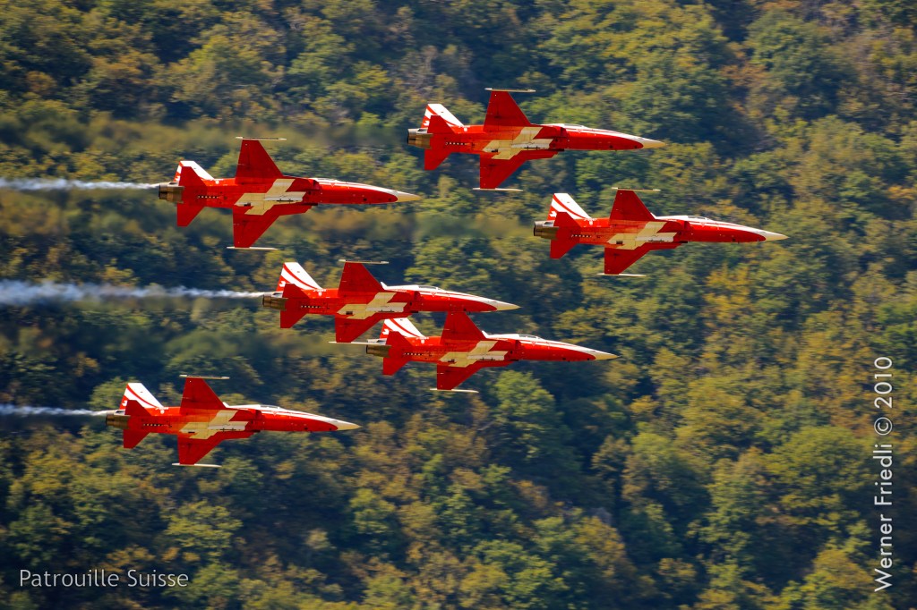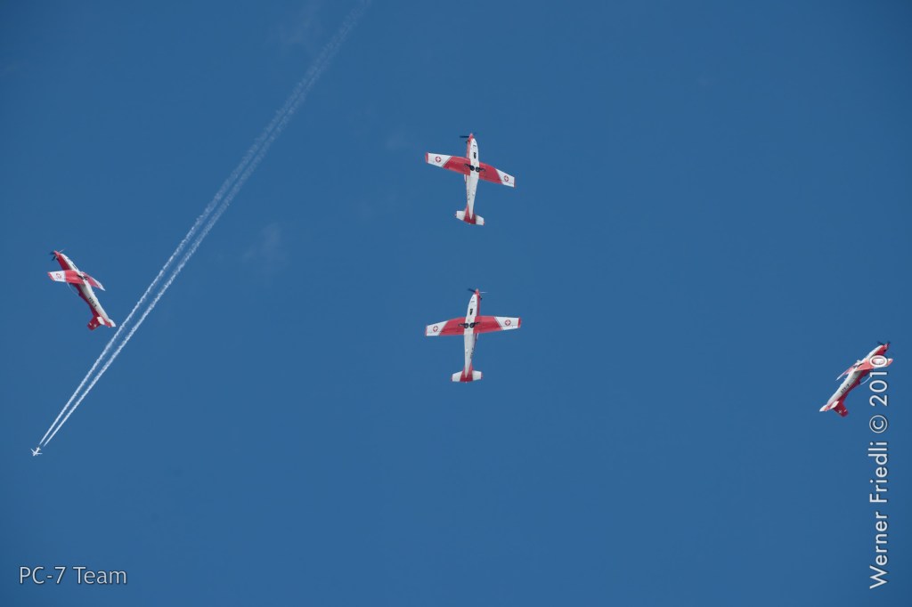 Das Programm war zweigeteilt: ein Teil in der Luft und ein Teil am Boden. Im Flying Display traten unter anderem das PC-7 Team, die Patrouille Suisse und der Militärhubschrauber Cougar auf, ausserdem sprangen Fallschirmgrenadiere aus einem Pilatus PC-6 Porter und mittags regnete es Gleitschirme vom Mornera-Flugplatz.