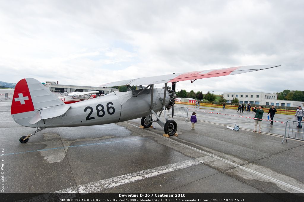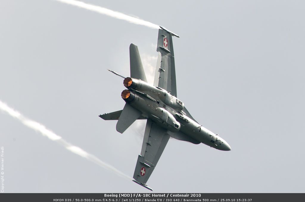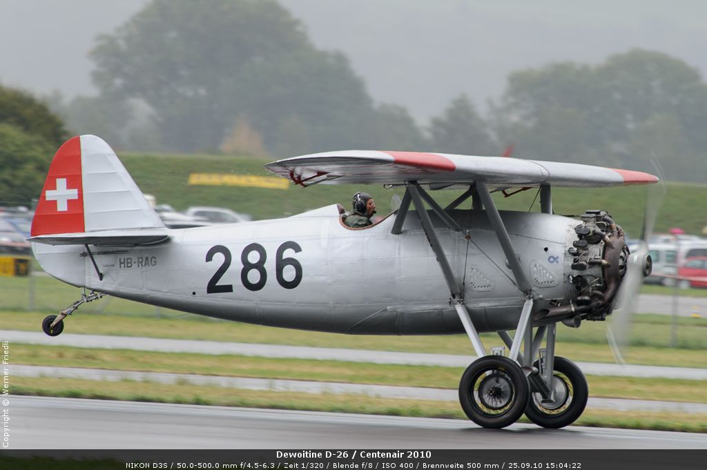 Weil die Patrouille Suisse während dieser Tage in Brig zum Gedenken an die Alpenüberquerung von Geo Chavez ihre Formationen flog, zeigten die restlichen Vorführteams der Schweizer Luftwaffe in Payerne ihr Können. Leider war das Wochenende vom 24. und 25. September 2010 nicht vom Wetter begünstigt, so dass sicherlich nicht so viele Zuschauer den Weg zum grössten Militärflugplatz der Schweiz auf sich nahmen. Trotzdem waren wohl einige tausend Zuschauer auf der Airbase verteilt. Mit einem guten Regenschutz für mich und die Kamera ausgerüstet, konnte das schlechte Wetter den Fotospass nicht mindern.