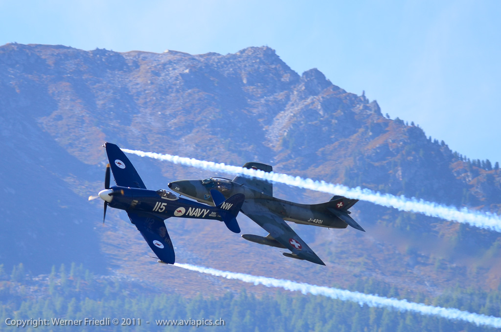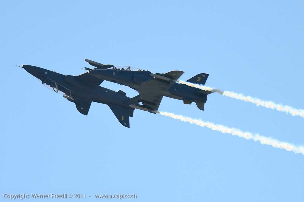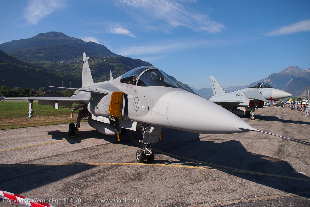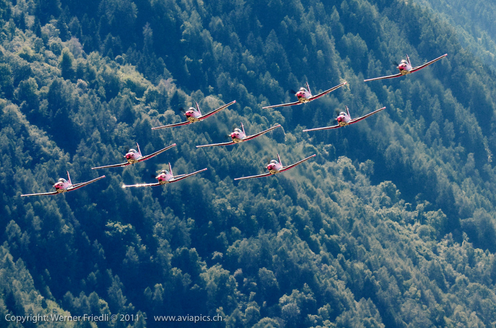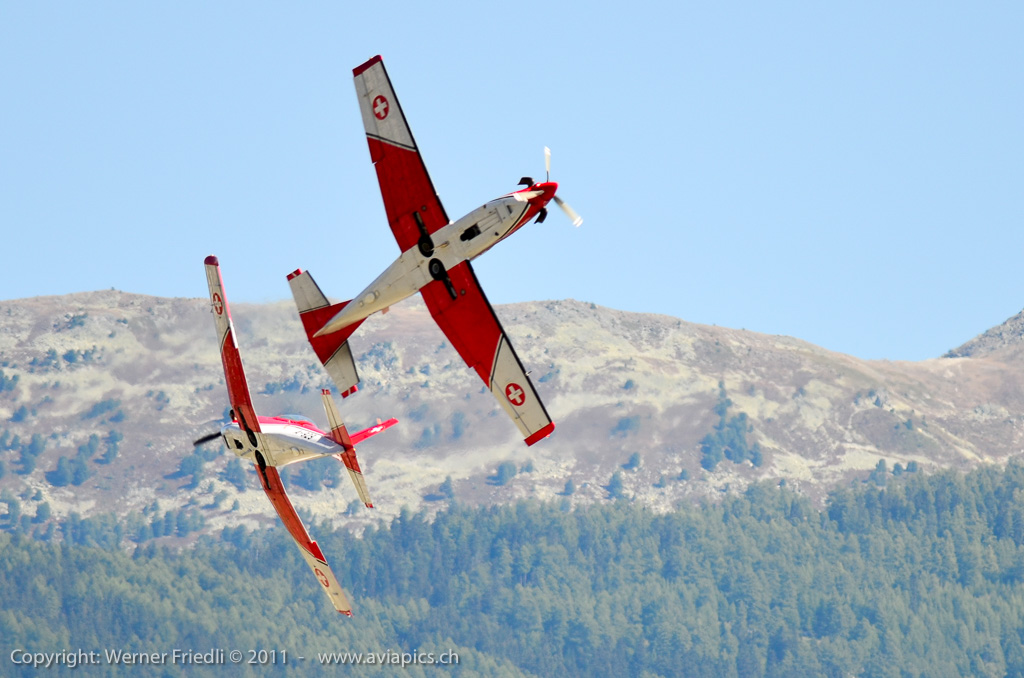Mit vielen Erinnerungen an frühere Fliegerfeste reiste ich am 16. und 17. September 2011 nach Sion. Leider war fürs Wochenende vom 17. und 18. September 2011 Regen sogar im Wallis gemeldet, und so entschied ich mich das Meeting bereits am Freitag zu besuchen. Bei bestem Wetter konnte ich so einen Grossteil des Flugprogramms bereits fotografieren. Am Samstag besuchte ich die Airshow noch einmal, vor allem auch um die Patrouille de France zu sehen. Nach meiner Erinnerung war es die erste Vorführung der PdF in der Schweiz seit Bex 2007.