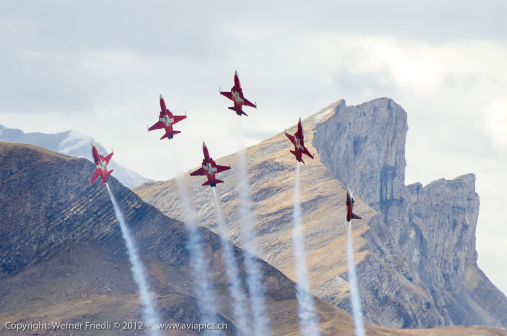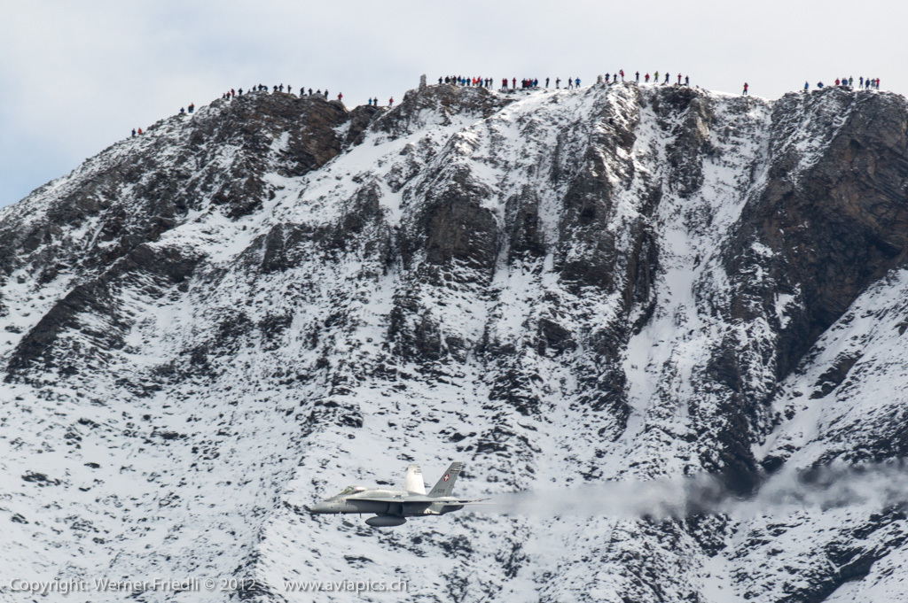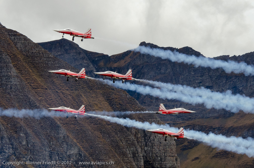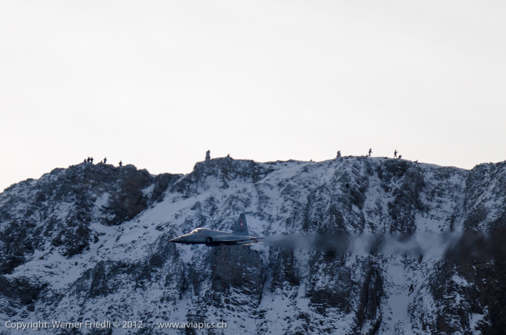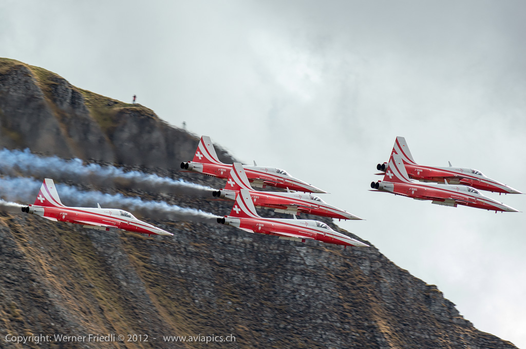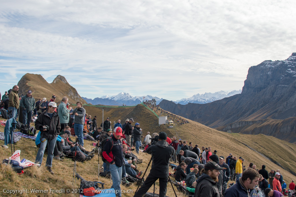 7000 Besucher zählte die Ausgabe 2012 des Fliegerschiessens auf der Ebenfluh am 11. Oktober 2012. Durch die witterungsbedingte Absage des ersten Tages der Veranstaltung konzentrierte sich der ganze Ansturm der Besucher auf den einzigen Vorführtag. Das Wetter hielt den auch den ganzen Tag, somit hatten die Meteorologen Recht und nach der abgesagten Axalp-Demo 2011 kam ich wieder voll auf meine Kosten.