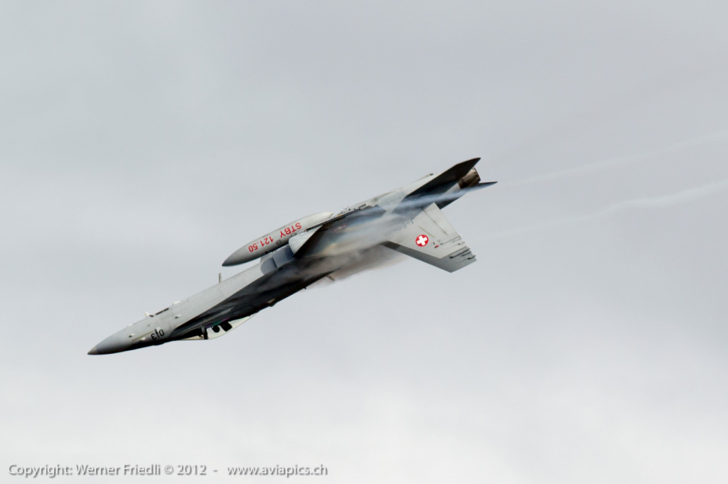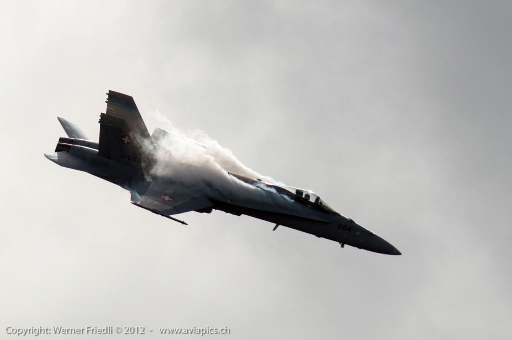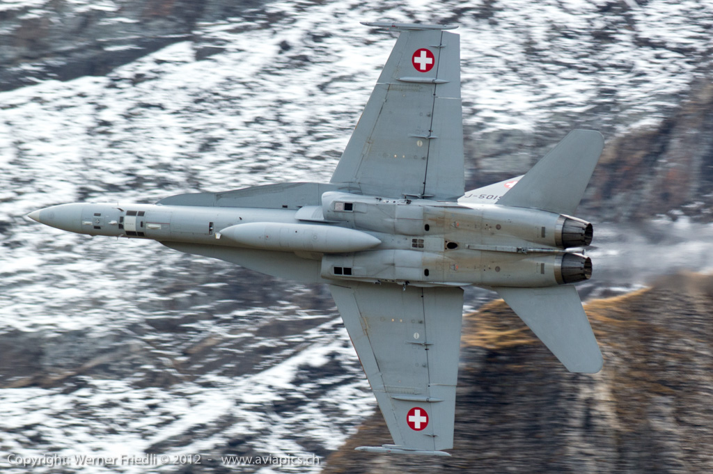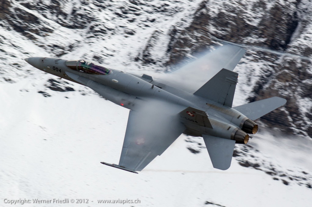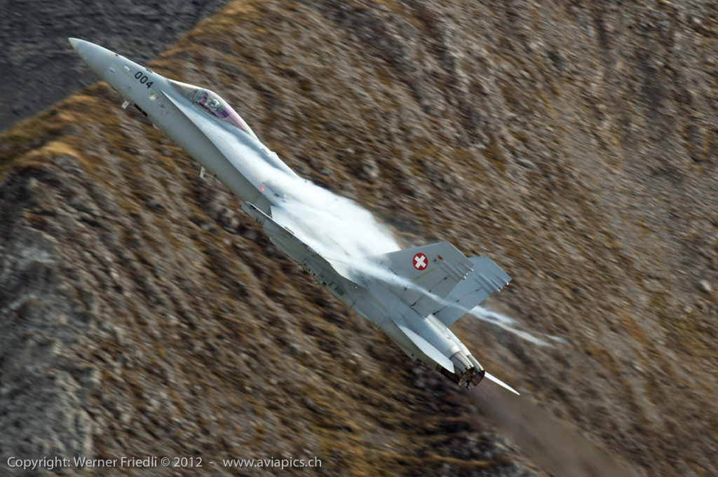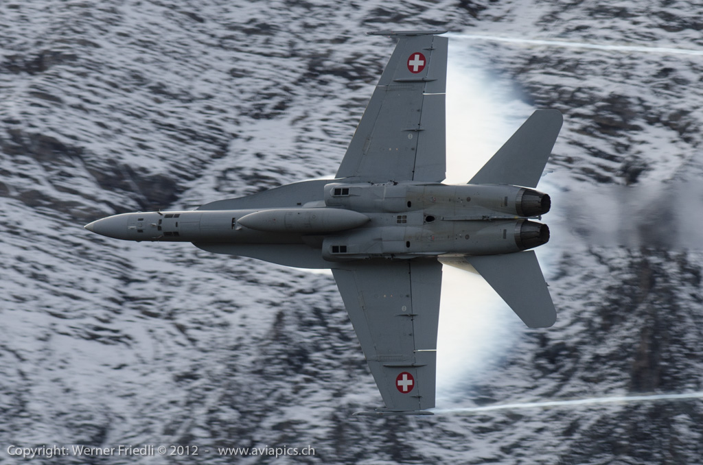 Die Eröffnung des Fliegerschiessens wurde bereits wie im Jahre 2010 durch eine Doppelpatrouille Hornets geflogen. Die zwei ersten Maschinen fliegen mit hoher Geschwindigkeit aus dem Tal an, schiessen während des Anfluges Flares ab und passieren danach den Kommandoposten (KP), während die zwei folgenden Maschinen bereits die Bodenziele unter Beschuss nehmen. Sicherlich wurde mit diesem Programmstart ein würdiger Ersatz für die frühere Axalp-Eröffnung durch die Mirage Aufklärer (AMIR) gefunden.