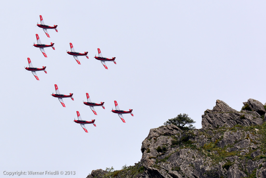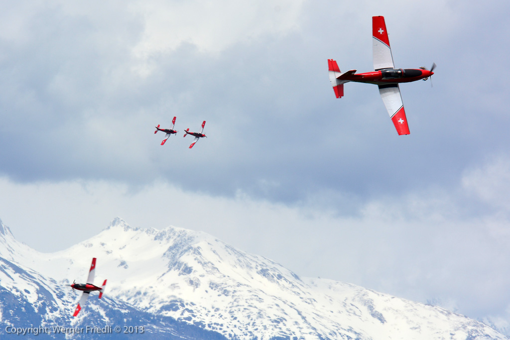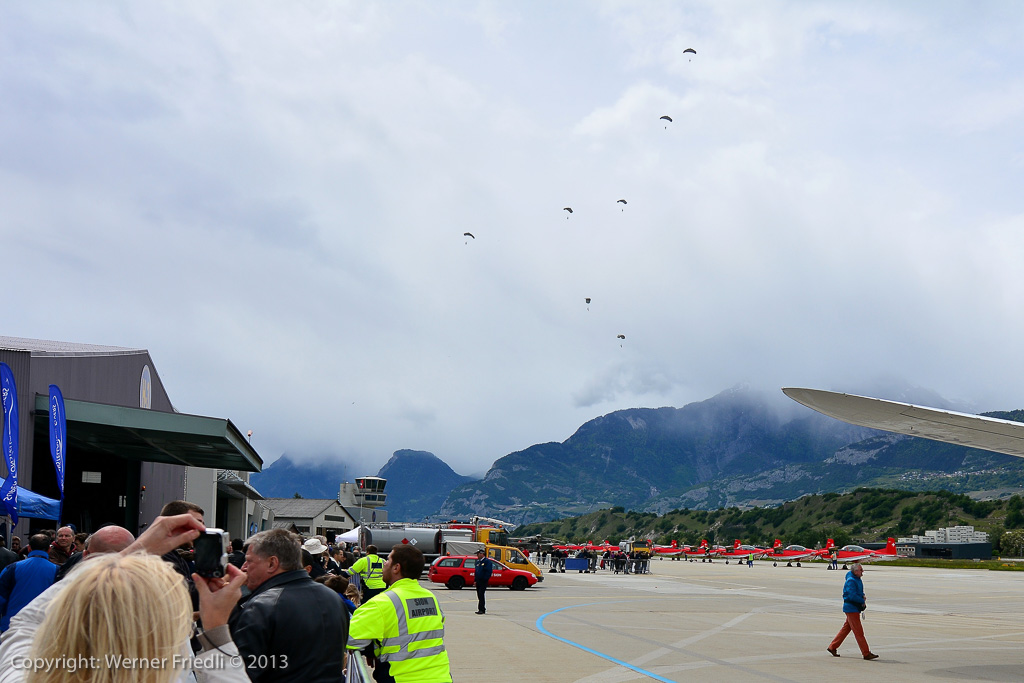 Das PC-7 Team, die Fallschirmaufklärer und das Super Puma Display erwiesen dem Flughafen Sion ihre Referenz. Zudem waren auch einige Warbirds auf dem Gelände anzutreffen, so eine Spitfire, eine Sea Fury, eine Grumman Avenger und eine Skyraider. Daneben konnte die Super Connie besichtigt werden und in den Hangars zeigten die Flugzeugmechaniker, wie viele Klappen und Servicezugänge die Jets der Schweizer Luftwaffe aufweisen.