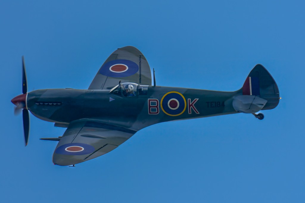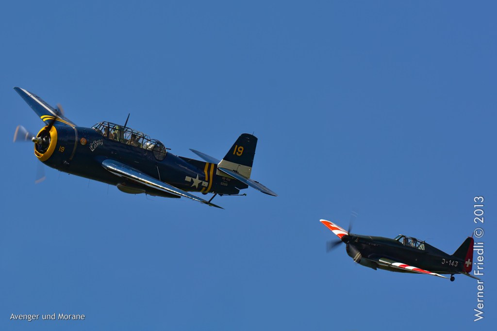 Supermarine Spitfire, North American Mustang, Grumman Avenger und eine Morane D-3801.