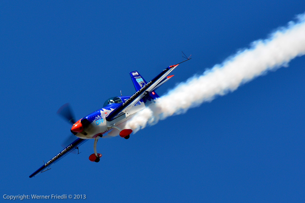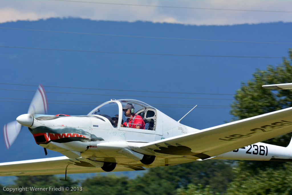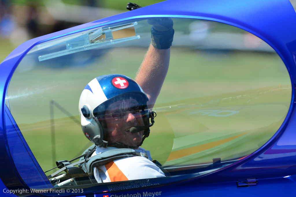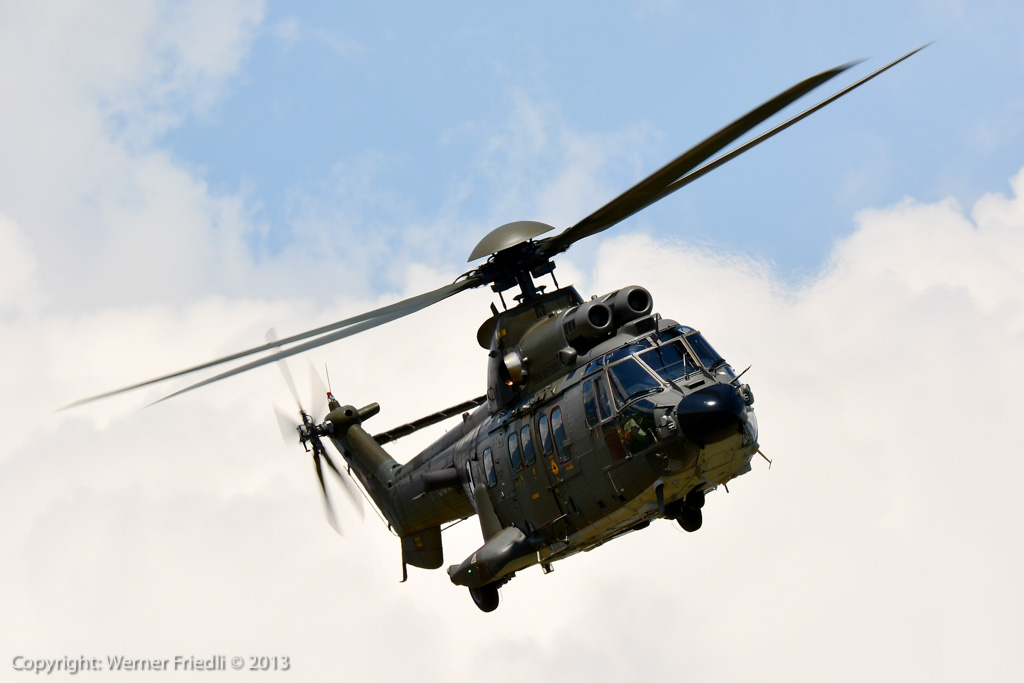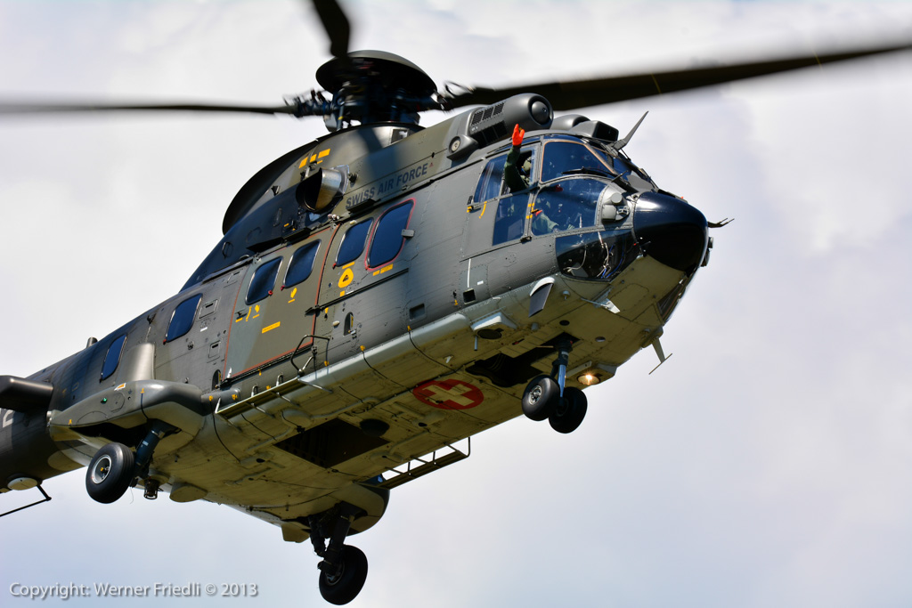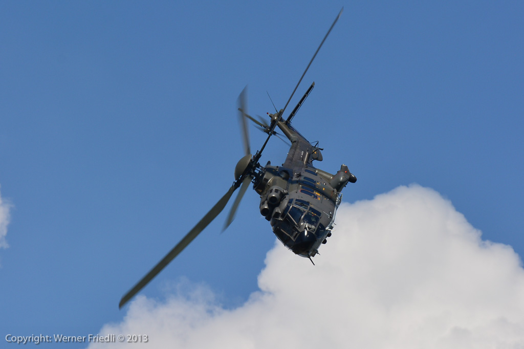 Höhepunkte der Ausgabe 2013 waren das Super Puma Display, die DC-3 von Breitling und die Vorführung des Hawker Hunter Trainers. Der alte Jetveteran aus Sion war bei seiner Vorführung mit zwei Rauchgeneratoren ausgerüstet, was die Demo natürlich umso interessanter machte. Ich habe mich ein wenig näher an die Vorführachse des Hunters gewagt, in der Hoffnung, die störende Hochspannungsleitung samt Oberleitung der Bahn nicht so präsent im Hintergrund zu haben. Gelohnt hat es sich leider nur bedingt. Trotzdem, Prangins ist immer ein Besuch wert.