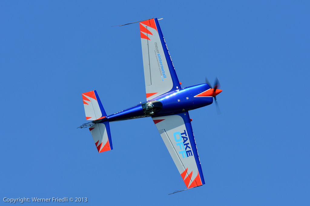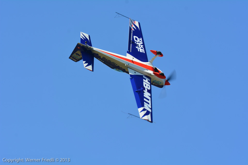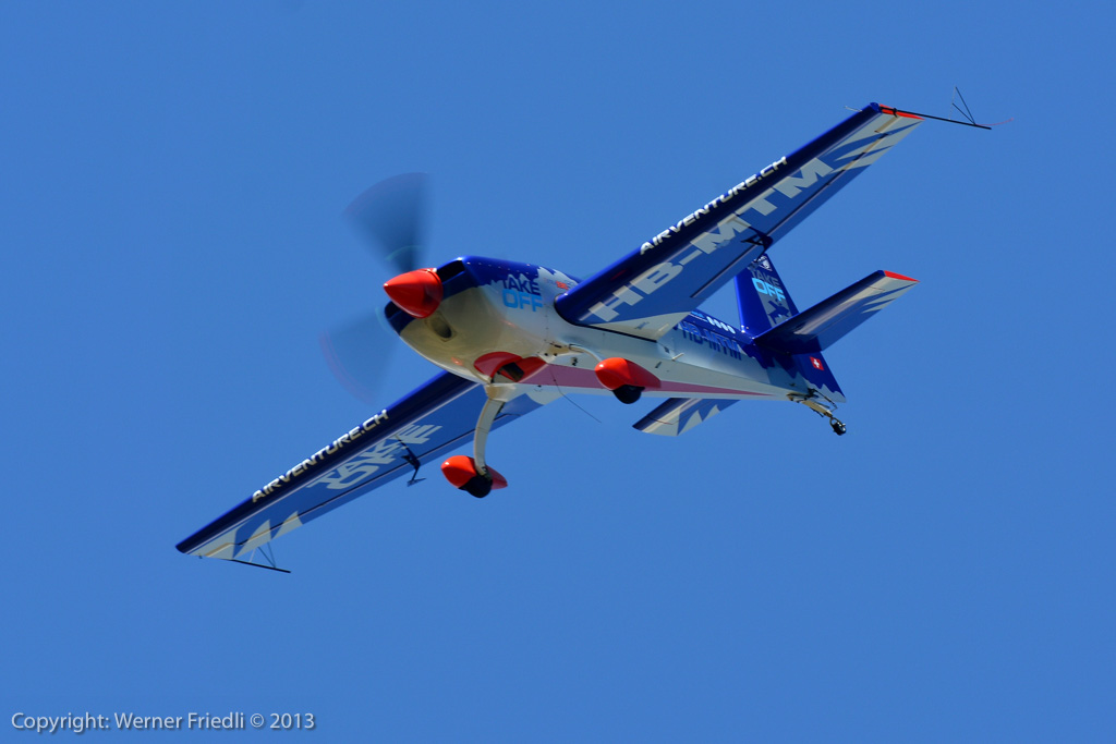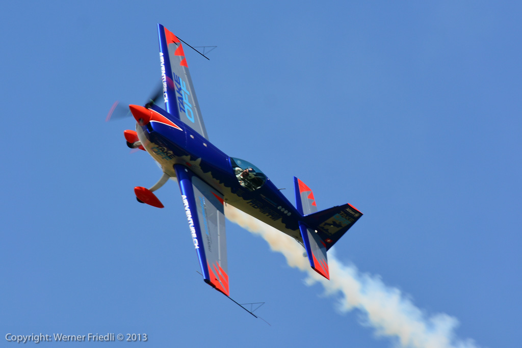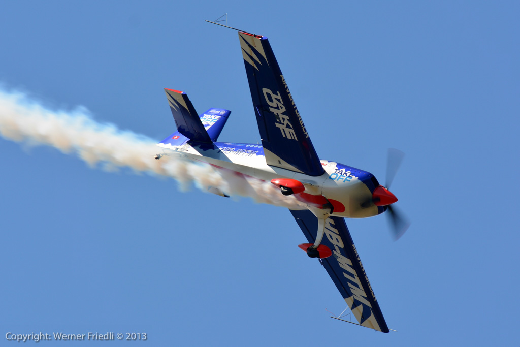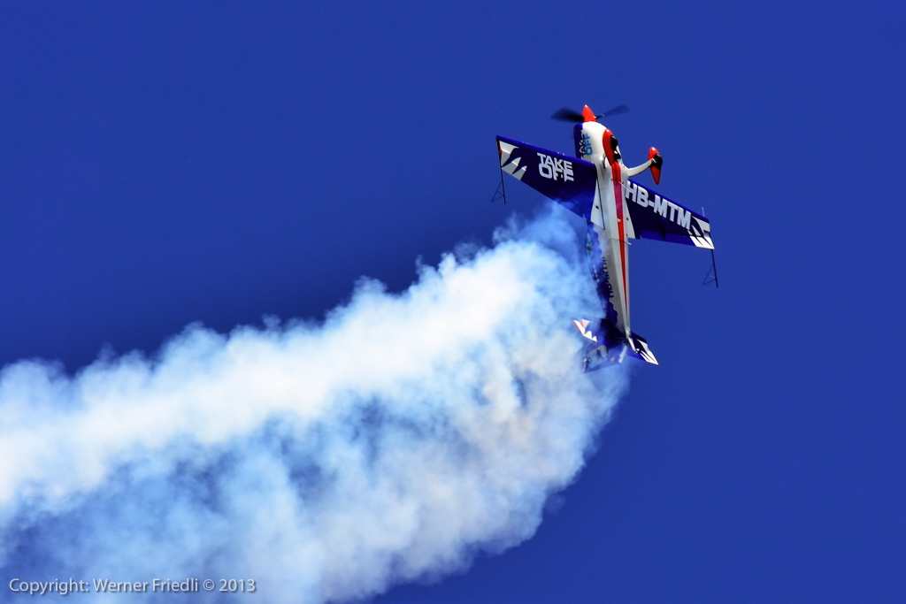 Höhepunkte der Ausgabe 2013 waren das Super Puma Display, die DC-3 von Breitling und die Vorführung des Hawker Hunter Trainers. Der alte Jetveteran aus Sion war bei seiner Vorführung mit zwei Rauchgeneratoren ausgerüstet, was die Demo natürlich umso interessanter machte. Ich habe mich ein wenig näher an die Vorführachse des Hunters gewagt, in der Hoffnung, die störende Hochspannungsleitung samt Oberleitung der Bahn nicht so präsent im Hintergrund zu haben. Gelohnt hat es sich leider nur bedingt. Trotzdem, Prangins ist immer ein Besuch wert.