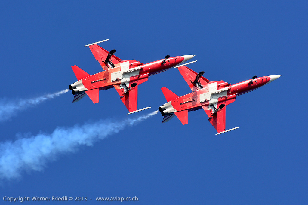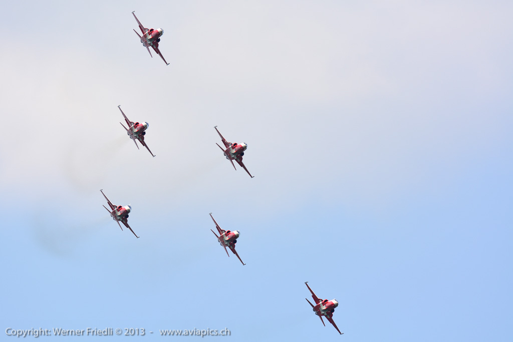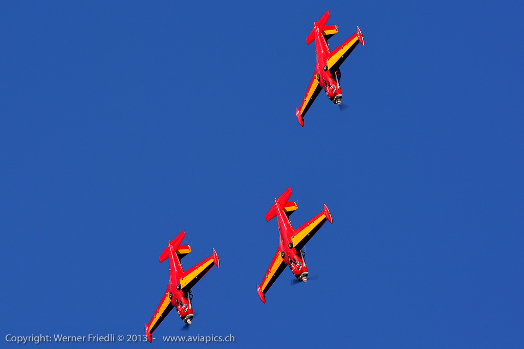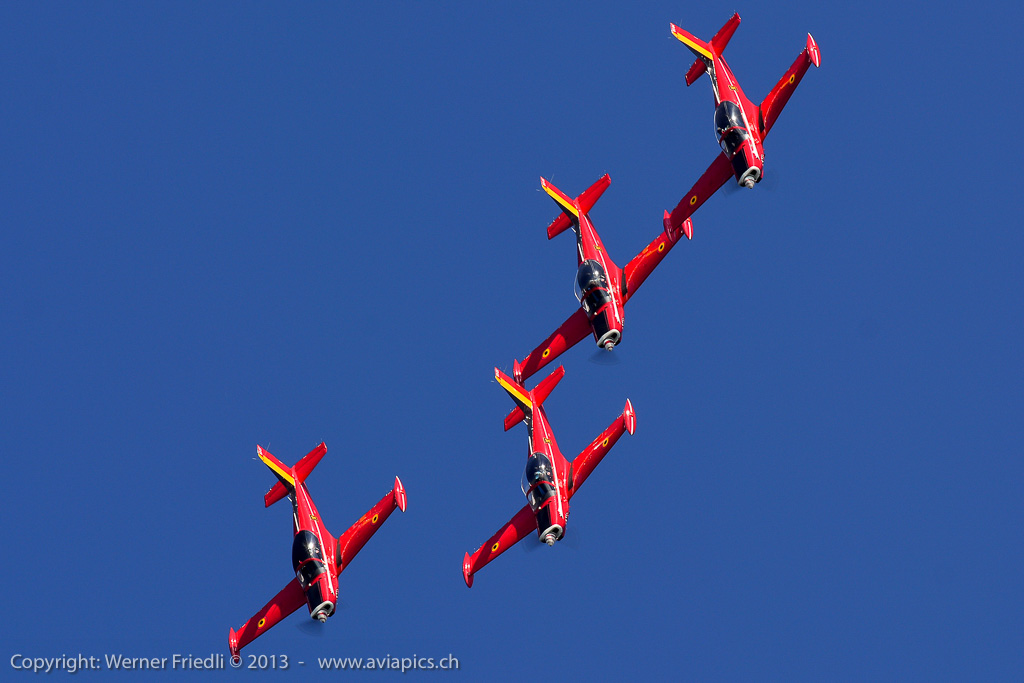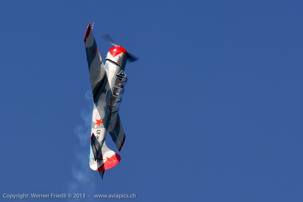Für mich neu waren die ‚Red Devils‘ der Belgischen Luftwaffe, welche mit vier rot-gelb bemalten Aermacchi SF260 eine schöne Show zeigten. Ansonsten waren die üblichen Besucher in Dittingen anzutreffen. Beim Betrachten der Fotos muss ich jedes mal neidlos anerkennen, dass der Flugplatz Dittingen so etwas wie der beste Platz für optimal belichtete Bilder ist. Hat man seine Kamera erst mal eingestellt, kann eigentlich nichts mehr schief gehen.