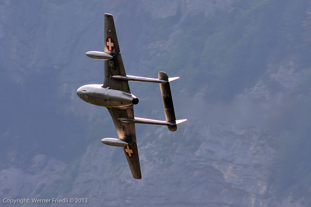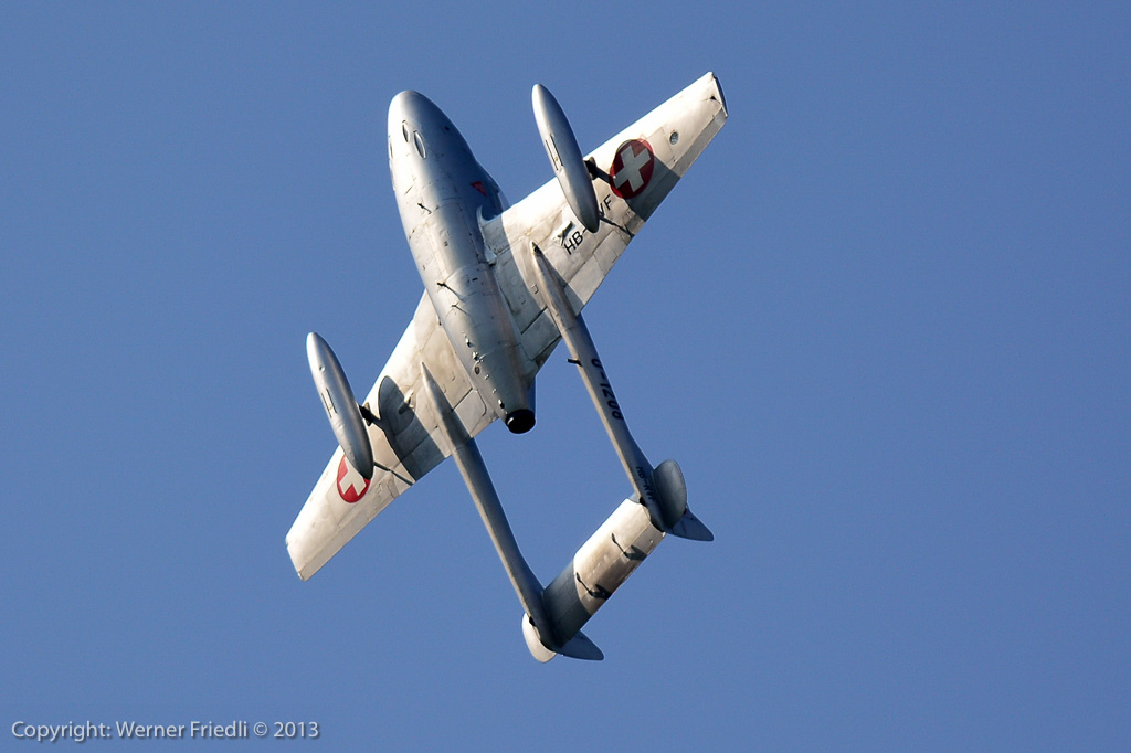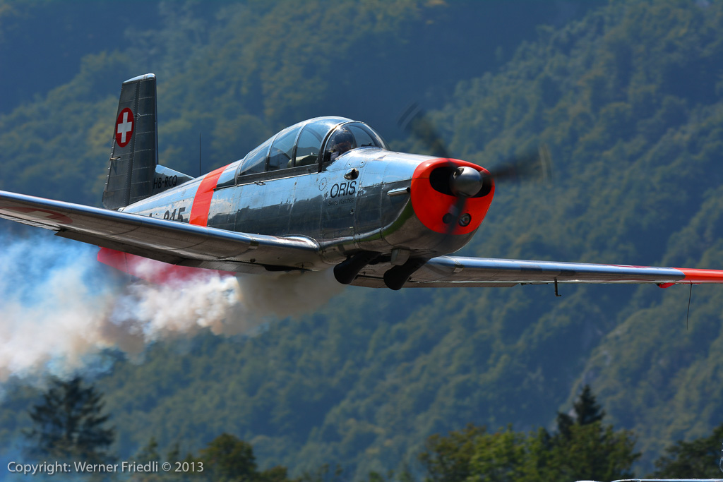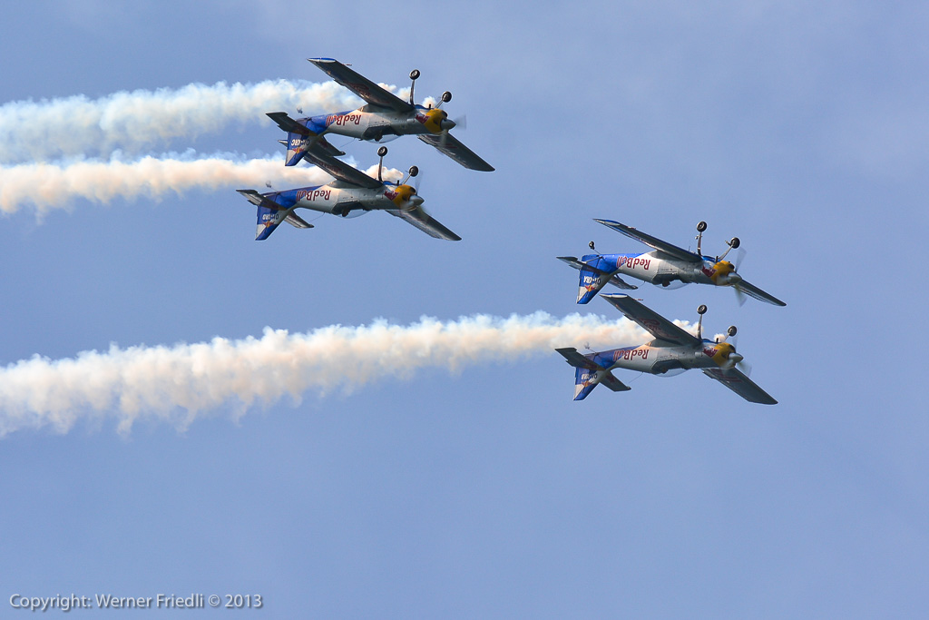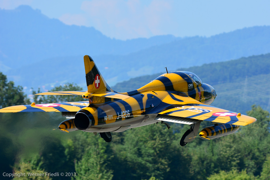 Das Zigermeet 2013, als grösste Airshow des Jahres in der Schweiz angepriesen, litt ein wenig unter den Absenzen. So wurde vor allem das Solodisplay der F/A-18 schmerzlich vermisst, auch wenn den Organisatoren hier kein Vorwurf gemacht werden kann. Die Schweizer Luftwaffe hat das F/A-18 Solo Display dieses Jahr nicht im Programm. Zwar machten Hunter und Vampire fleissig Passagierflüge, aber bei diesem Jetsound blieb es dann auch. Auch bei den Warbirds vermisste man die eine oder andere Maschine, die man in der Schweiz regelmässig sieht. So die C-3605, die Avenger und auch die Morane. All diese Maschinen besuchten das Oldtimertreffen auf der Hahnweide in der Nähe von Stuttgart, welches am gleichen Wochenende stattfand.