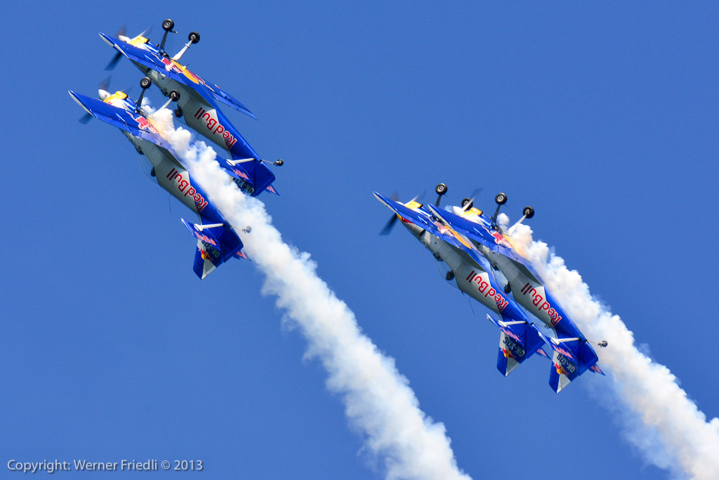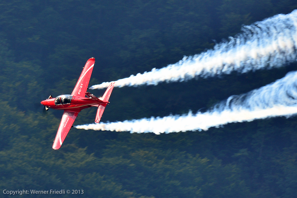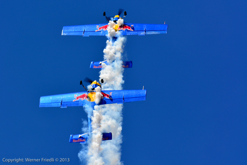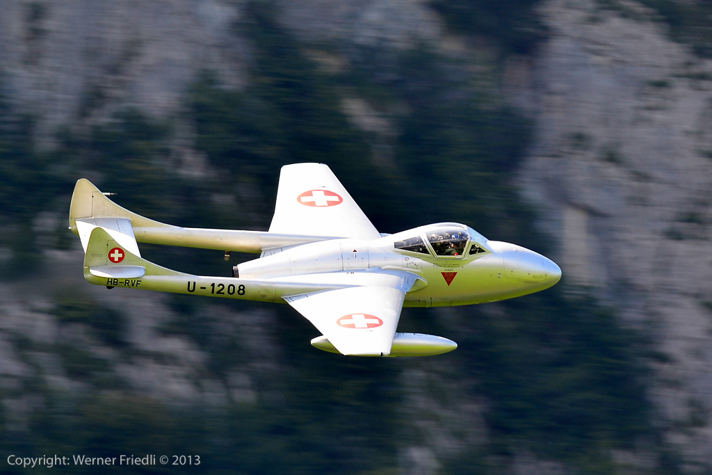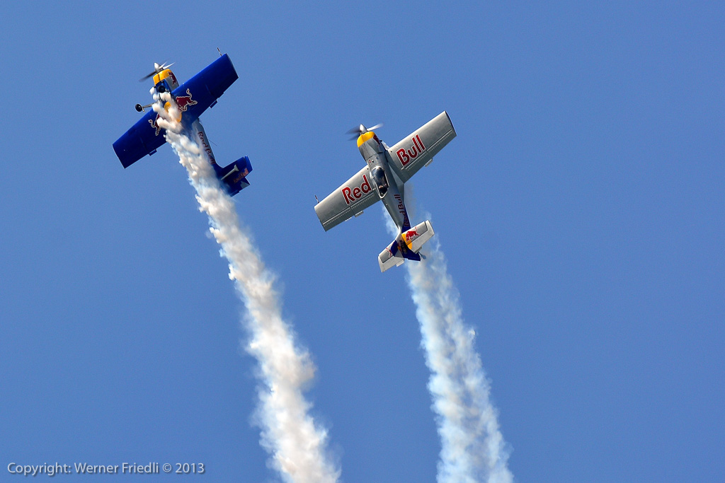 Das Zigermeet 2013, als grösste Airshow des Jahres in der Schweiz angepriesen, litt ein wenig unter den Absenzen. So wurde vor allem das Solodisplay der F/A-18 schmerzlich vermisst, auch wenn den Organisatoren hier kein Vorwurf gemacht werden kann. Die Schweizer Luftwaffe hat das F/A-18 Solo Display dieses Jahr nicht im Programm. Zwar machten Hunter und Vampire fleissig Passagierflüge, aber bei diesem Jetsound blieb es dann auch. Auch bei den Warbirds vermisste man die eine oder andere Maschine, die man in der Schweiz regelmässig sieht. So die C-3605, die Avenger und auch die Morane. All diese Maschinen besuchten das Oldtimertreffen auf der Hahnweide in der Nähe von Stuttgart, welches am gleichen Wochenende stattfand.