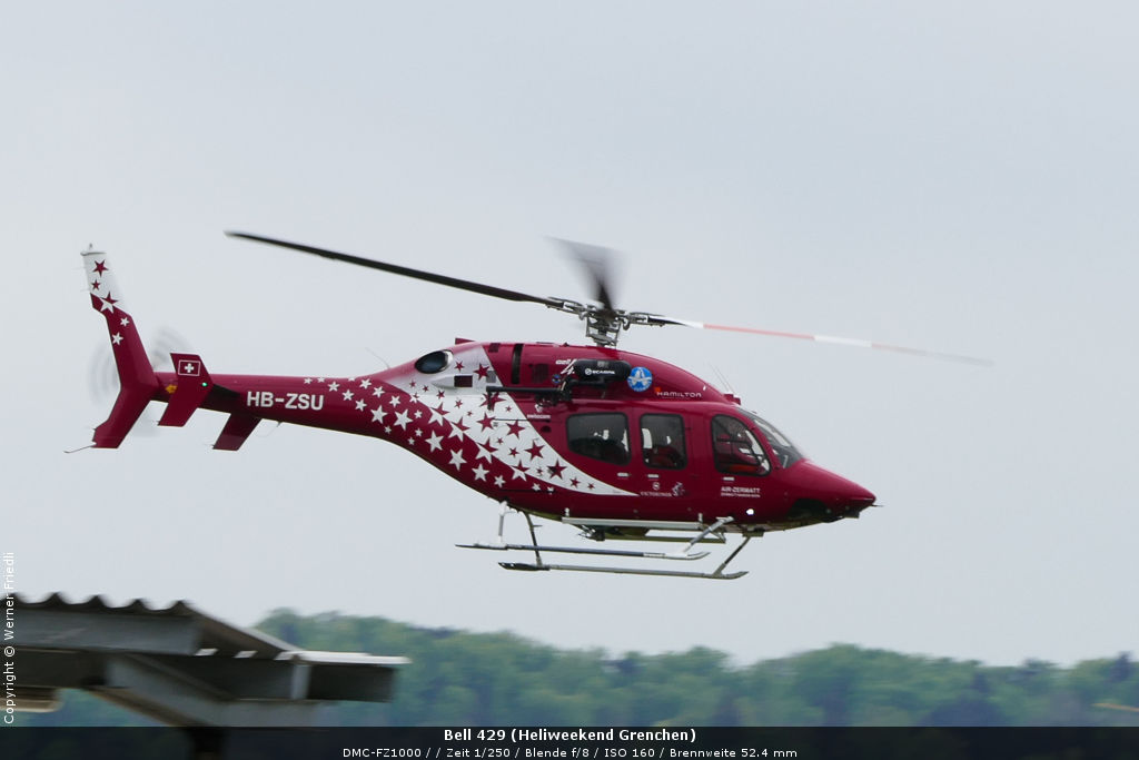 Bei den Gasthubschraubern stachen vor allem die Bell 429 der Air Zermatt und eine Bell 407 ins Auge. Daneben war eine ältere Bell Jet Ranger und eine McDonnell Douglas MD 520N im Militarylook aber mit zivilen Registrierungen zu bewundern. Am meisten vertreten waren aber wie so oft die kleinen Robinson-Helikopter in den Ausführungen R22, R44 und R66.