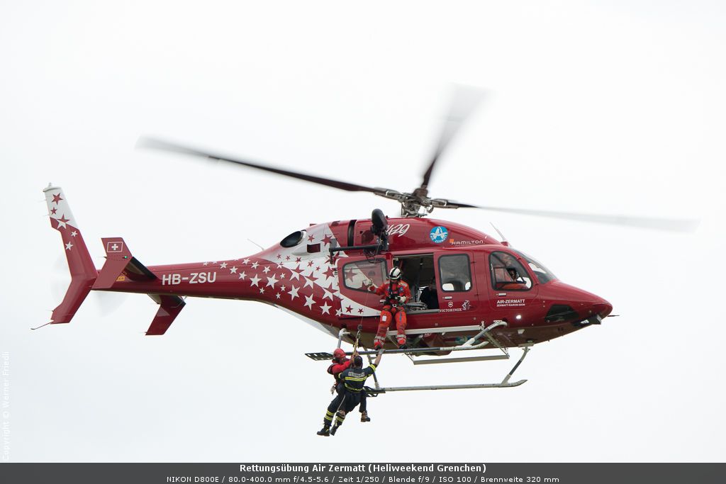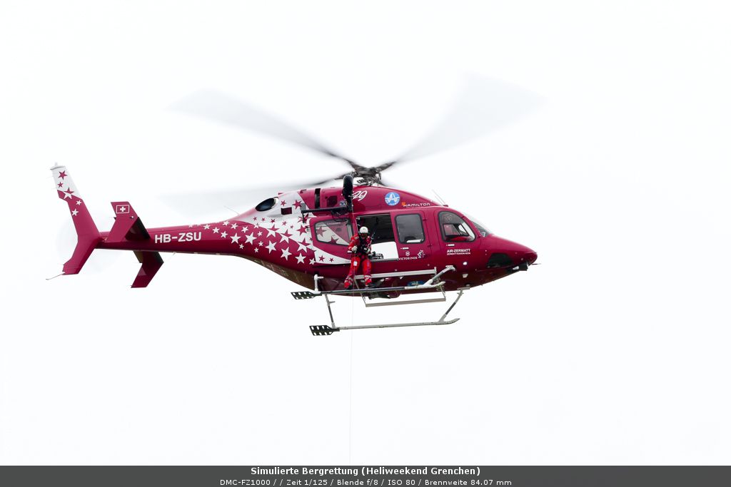 Bereits zum achten Mal wurde das Heliweekend auf dem Flughafen Grenchen durchgeführt. Neben den üblichen Fixpunkten des Programms stiessen die Vorführungen der Air Zermatt auf ein grosses Publikumsinteresse. Gerold Biner und Bruno Jelk waren mit von der Partie, beide bekannt aus der Dok-Serie des Schweizer Fernsehens „Die Bergretter“.