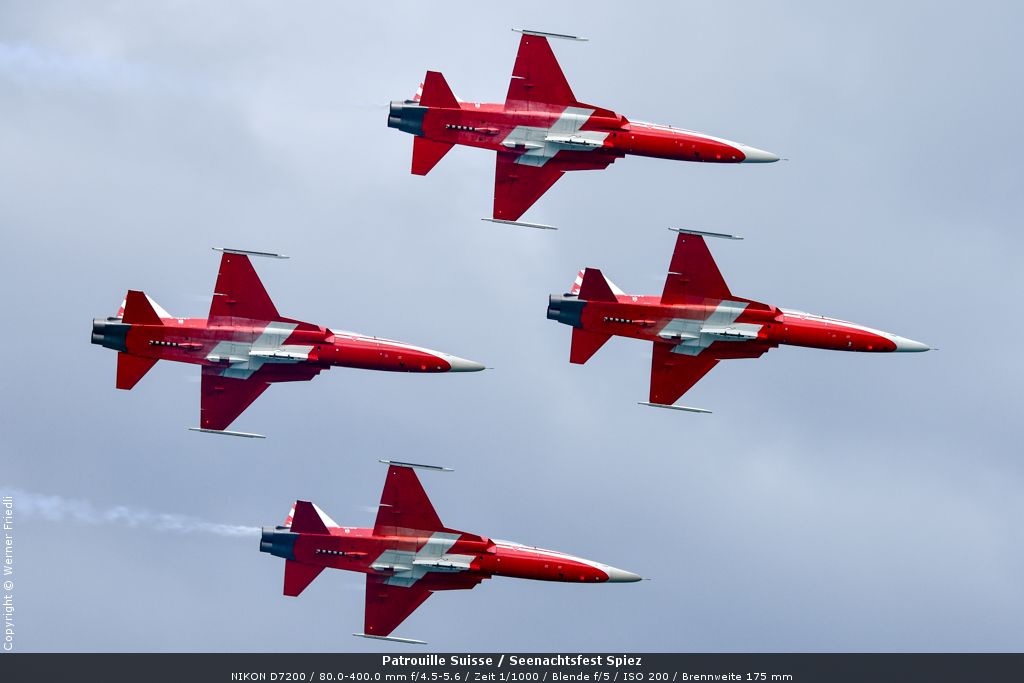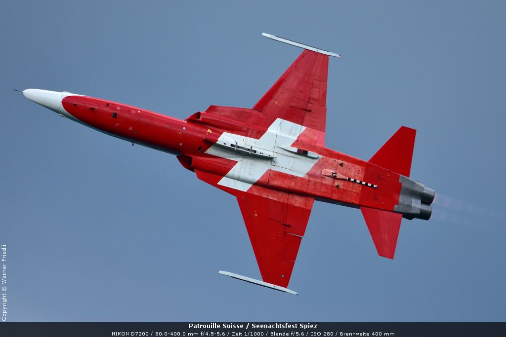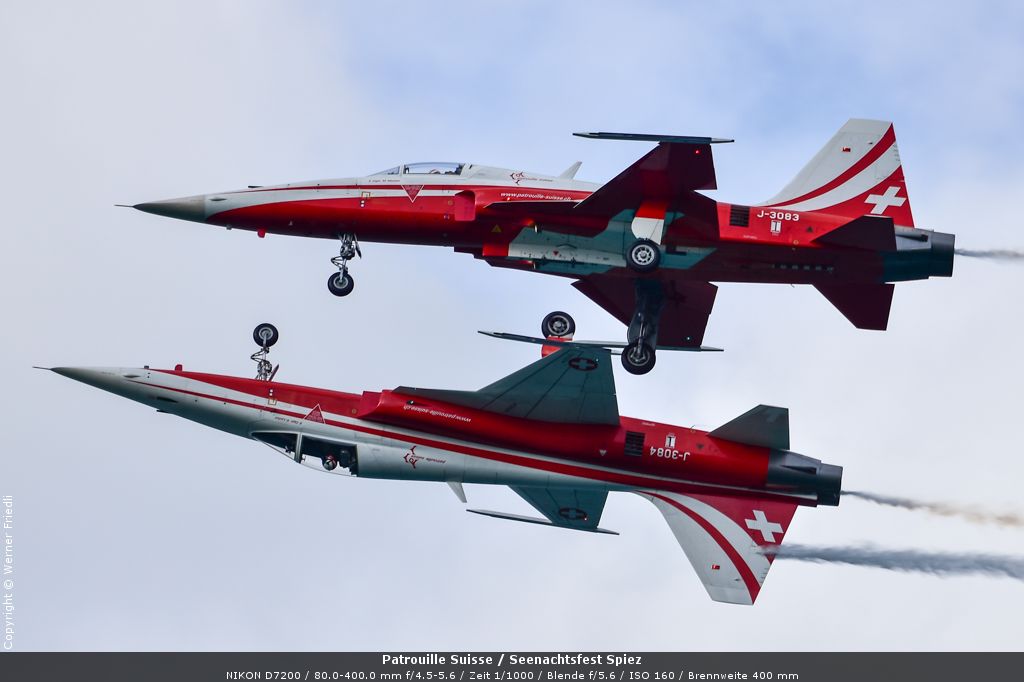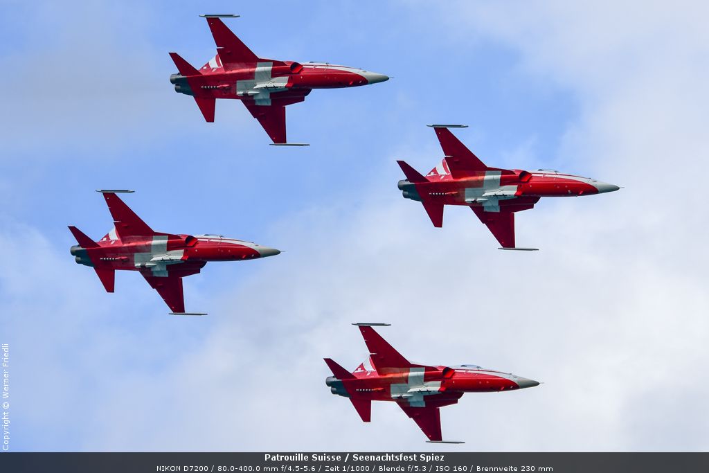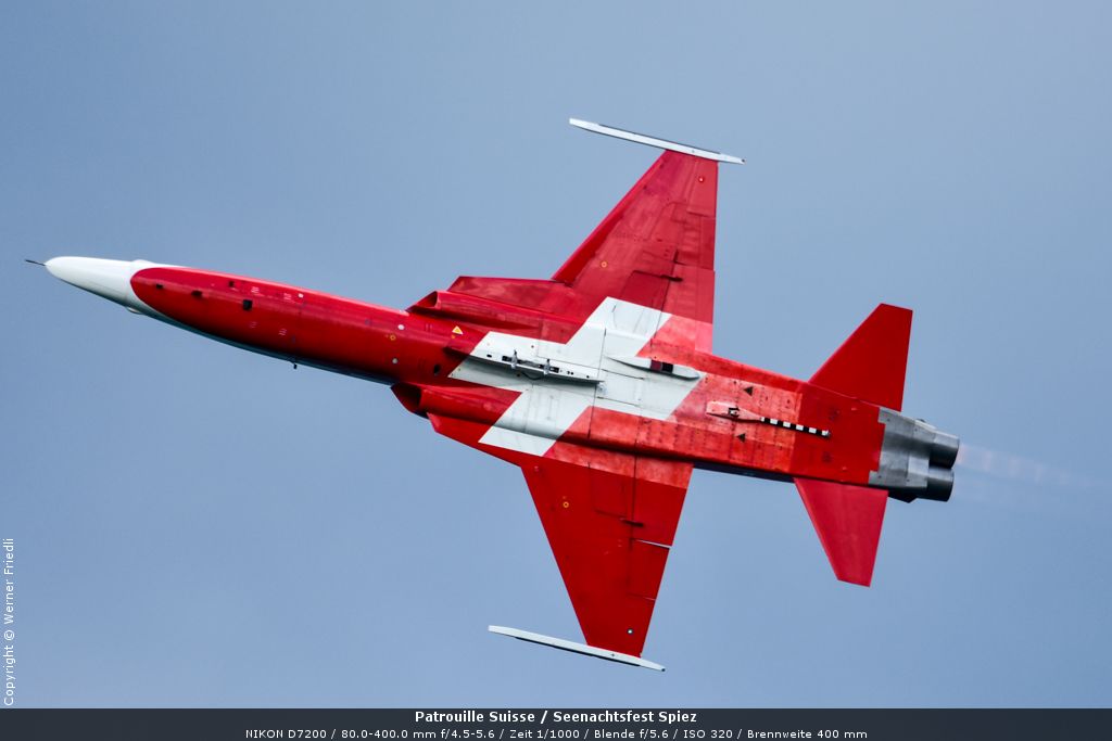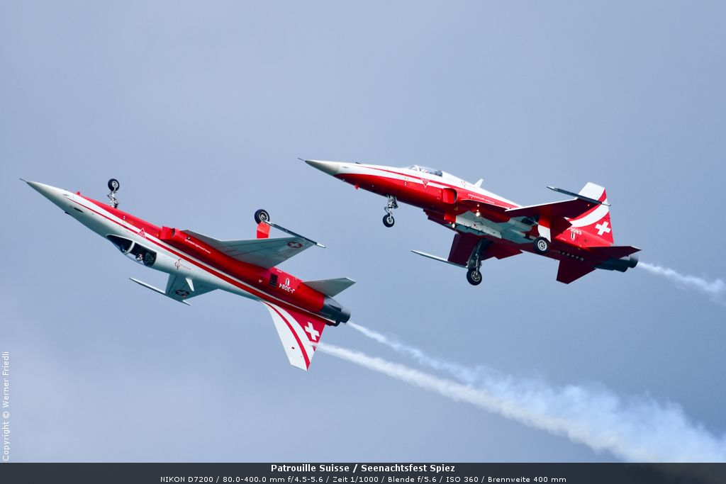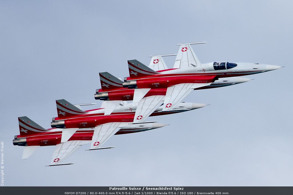 Gleich drei Auftritte an einem Tag mussten die Piloten bewältigen, zuerst auf dem Rütli, dann ich Spiez und in der eindämmernden Nacht noch über der Stadt Basel. Die Vorführung in der Spiezer Bucht ist den Piloten dabei sehr gut gelungen, und sehr viele Zuschauer, die diese Art des Formations-Kunstfluges mit Jets bisher nicht kannten, waren sicherlich beeindruckt.