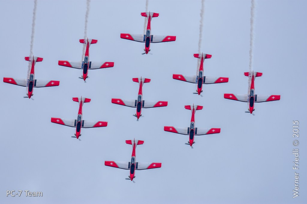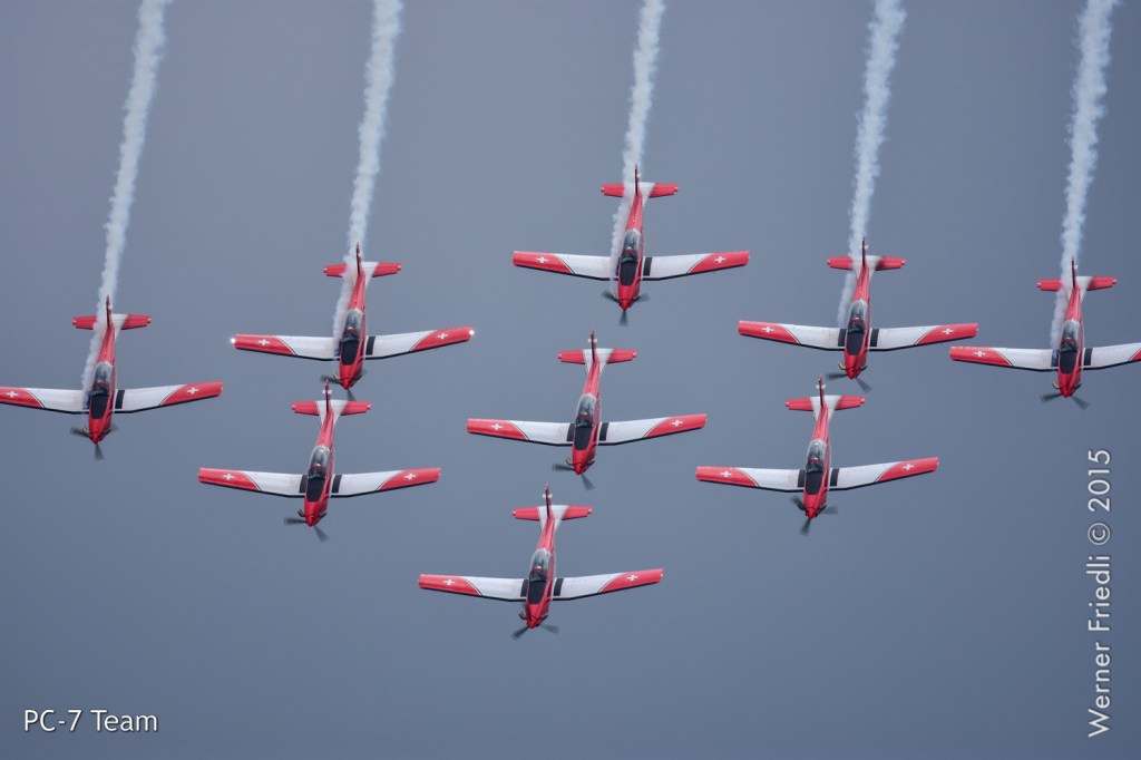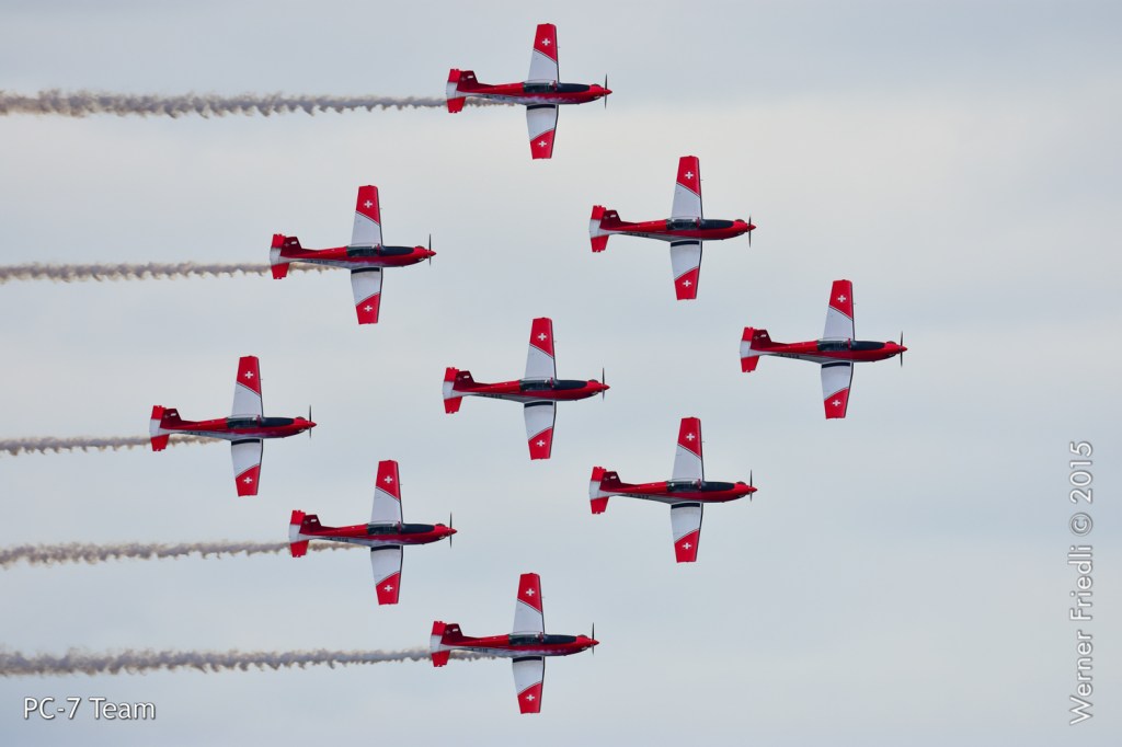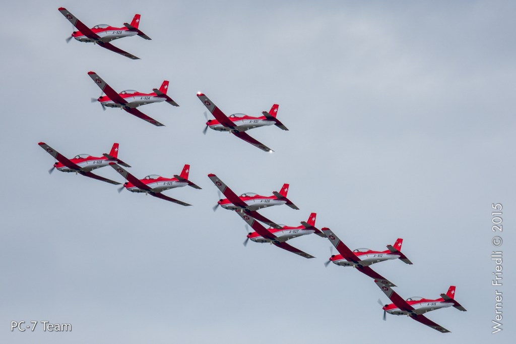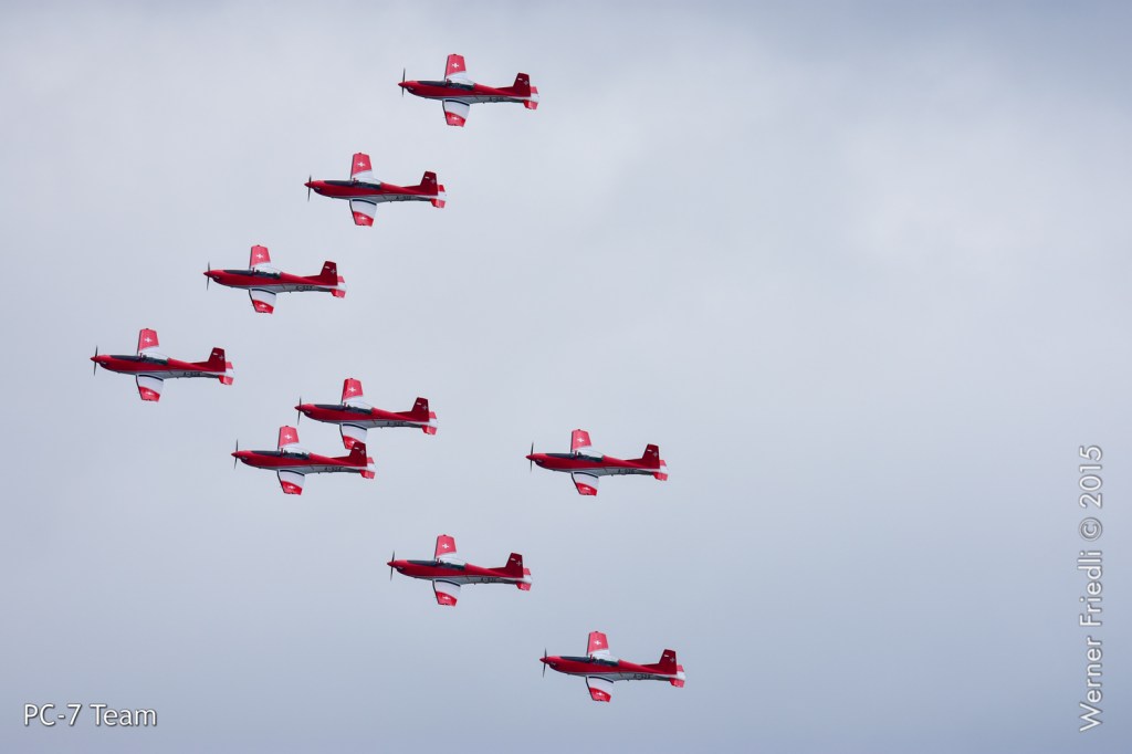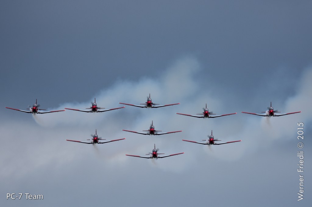 Die Schweizer Luftwaffe war mit dem PC-7 Team und der F/A-18 Hornet vertreten, wobei eine sogenannte kombinierte Vorführung gezeigt wurde. Das heisst, dass alle Maschinen zusammen die Vorführung beginnen und nach einem ersten Überflug die F/A-18 den Verband verlässt und das Solo-Display zeigt, welches ca. 10 Minuten dauert. Anschliessend zeigt das PC-7 Team das vollständige Programm.