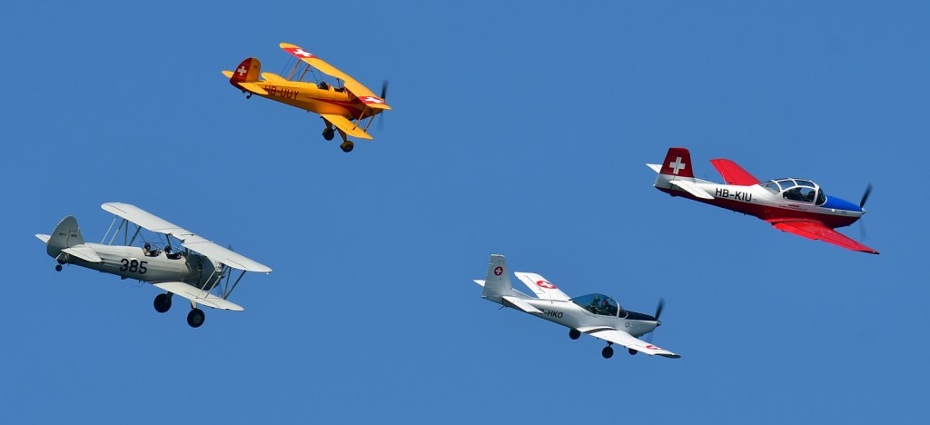 Auch die Flugzeuge des Fliegermuseums Altenrhein flogen Vorführungen am stahlblauen Himmel über dem Bodensee.