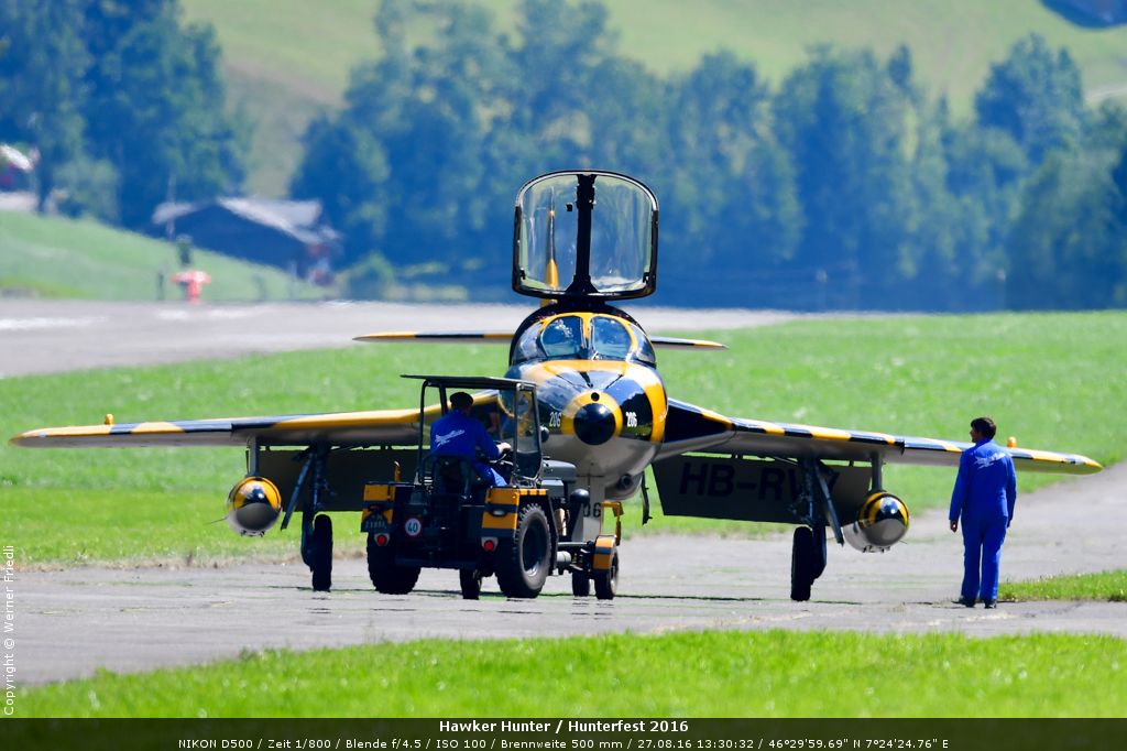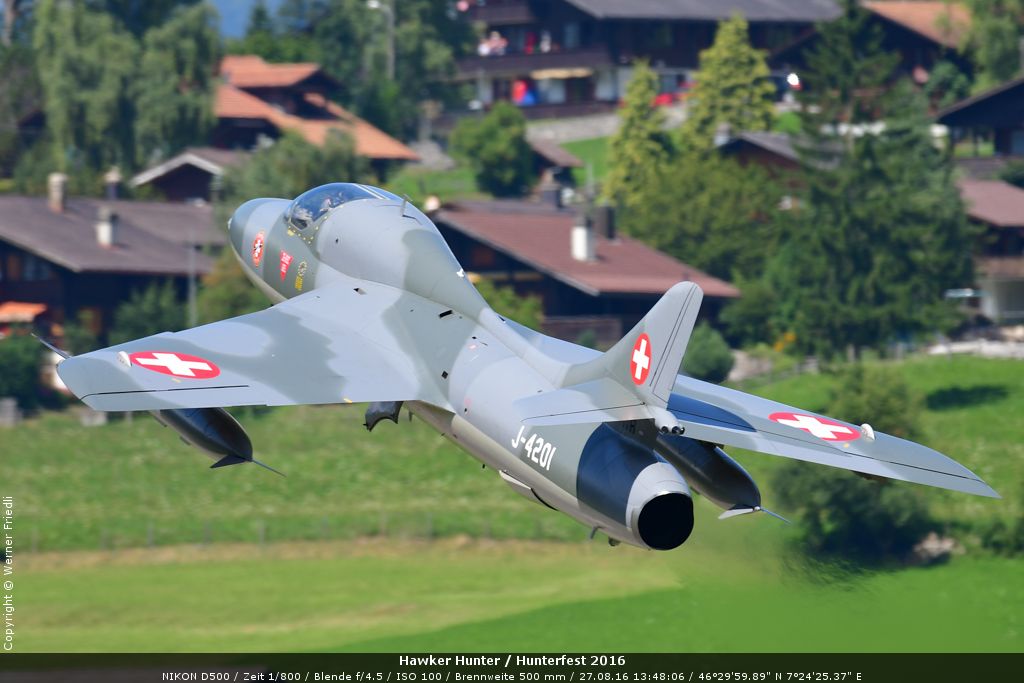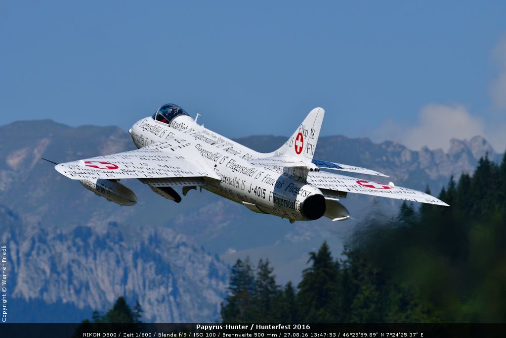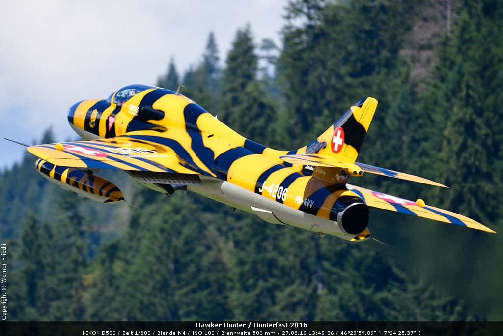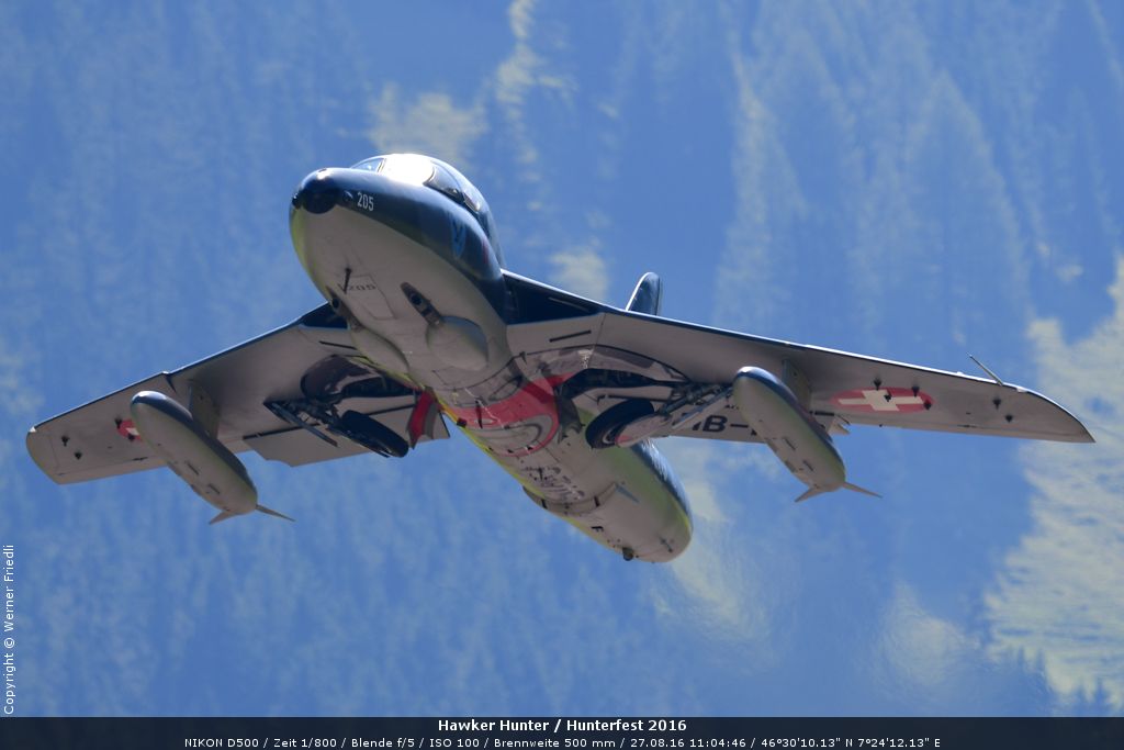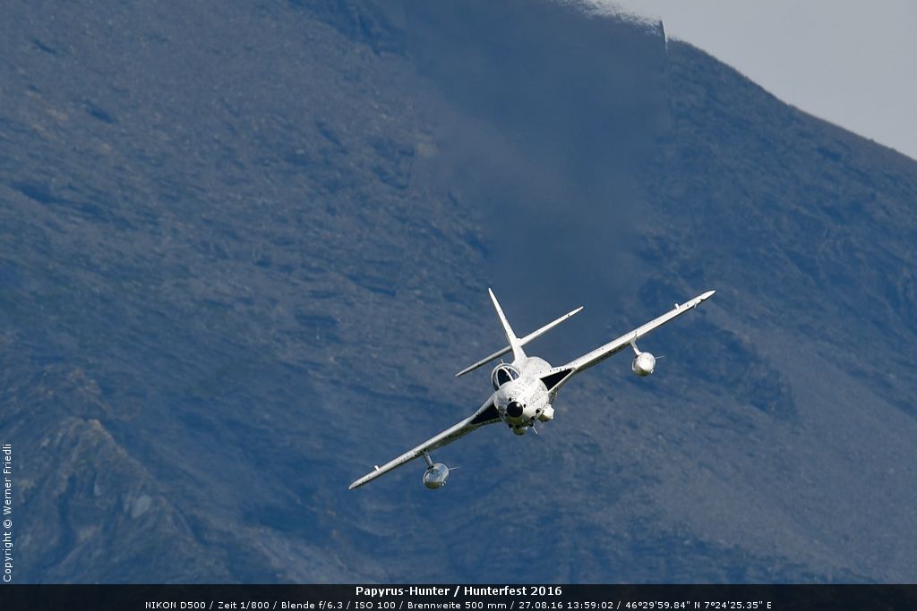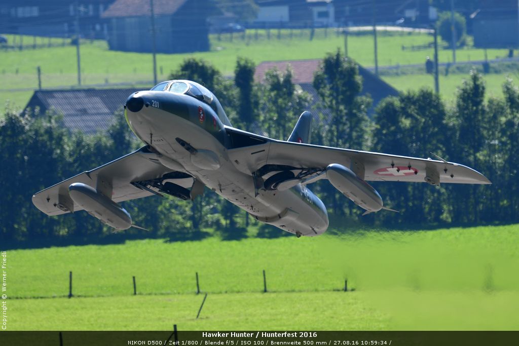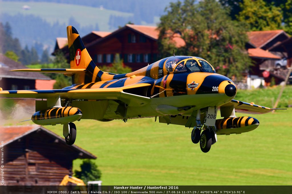 Am 27. August 2016 fand schon traditionell das Hunterfest in St. Stephan im Obersimmental statt. Bei sommerlichen Temperaturen über 30°C und Sonnenschein den ganzen Tag konnte man sich als Fotograf nur so freuen auf die nahen Vorbeiflüge der alten Jets.