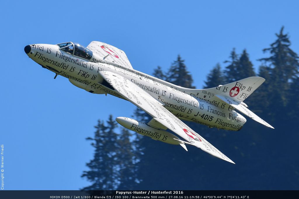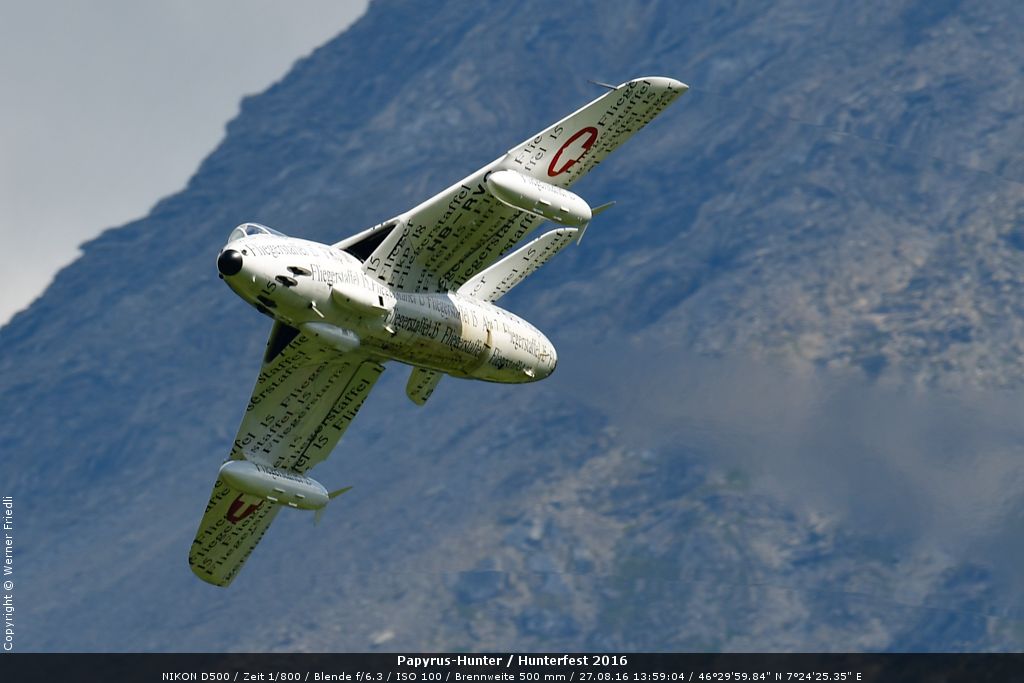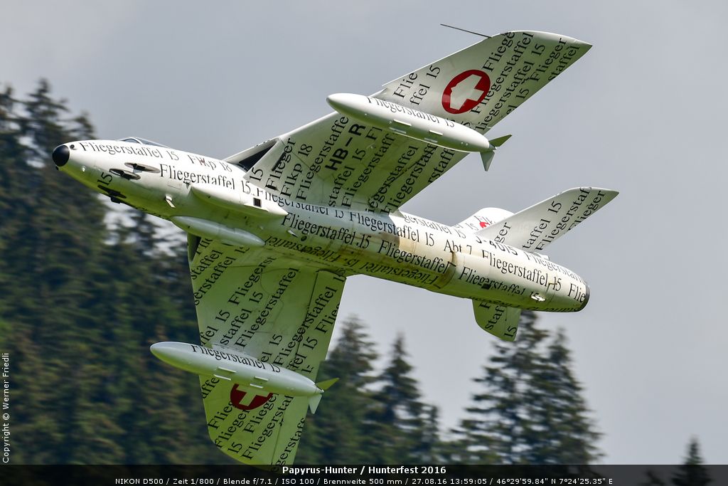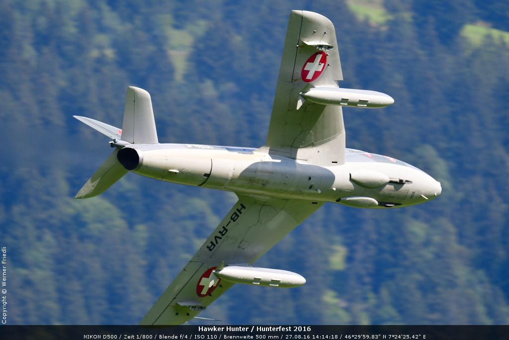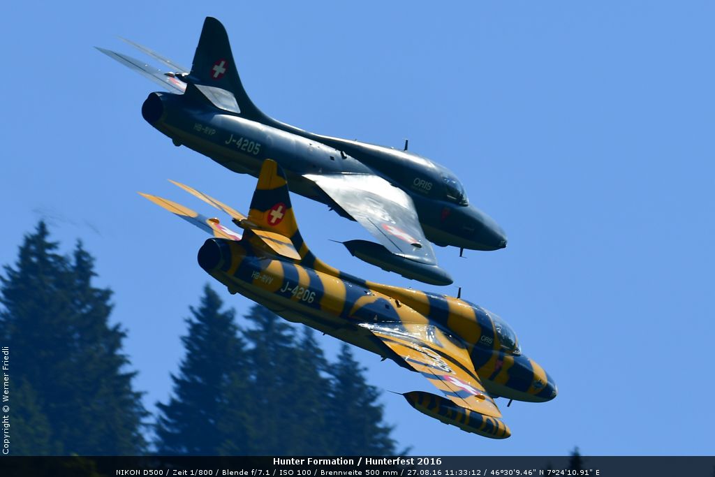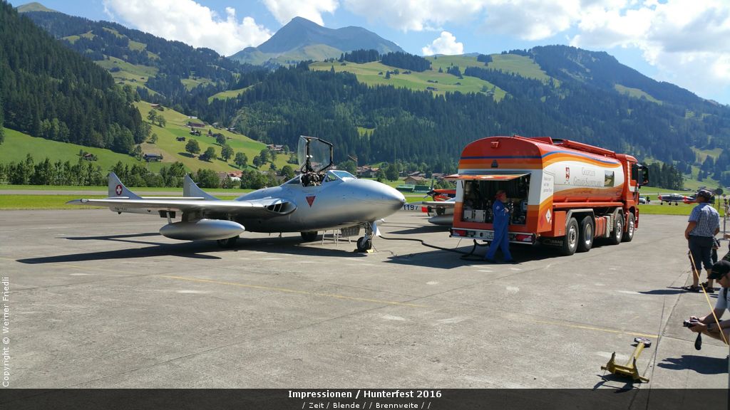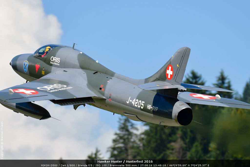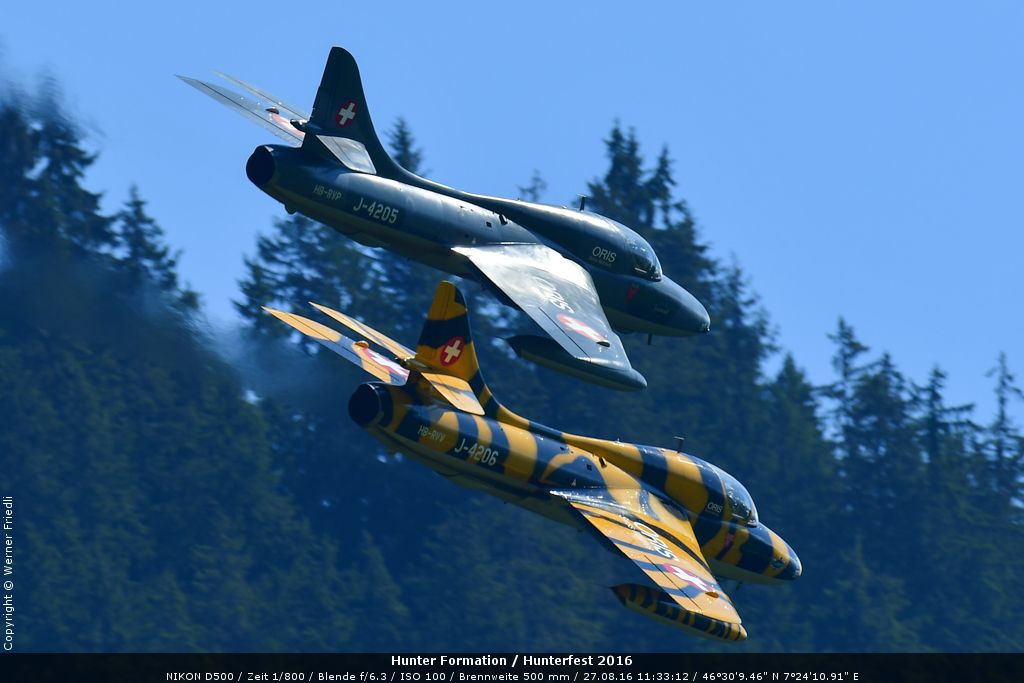 Am 27. August 2016 fand schon traditionell das Hunterfest in St. Stephan im Obersimmental statt. Bei sommerlichen Temperaturen über 30°C und Sonnenschein den ganzen Tag konnte man sich als Fotograf nur so freuen auf die nahen Vorbeiflüge der alten Jets.