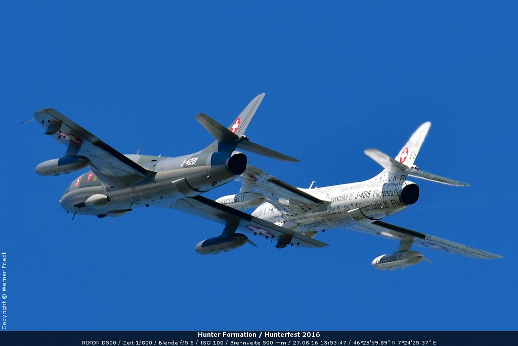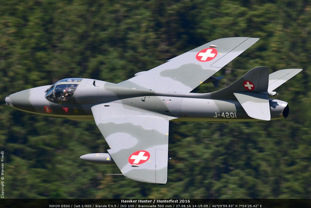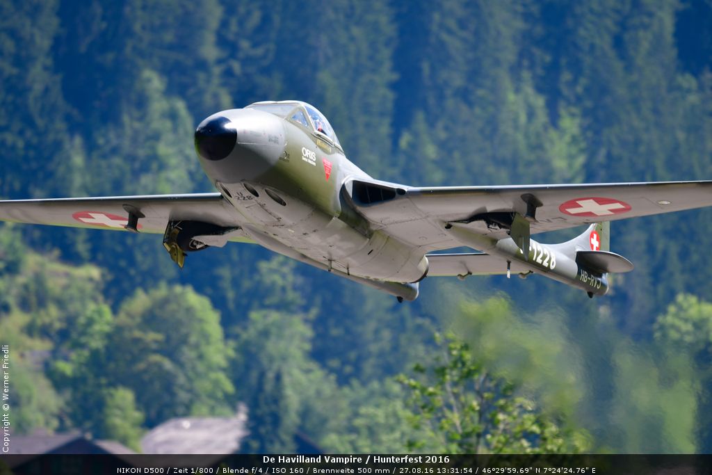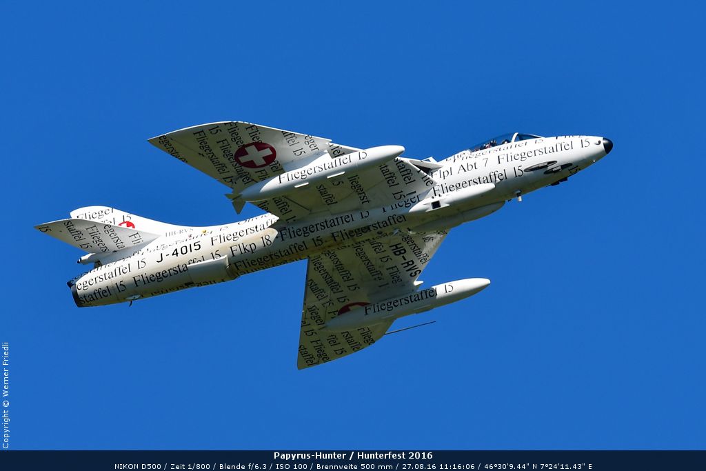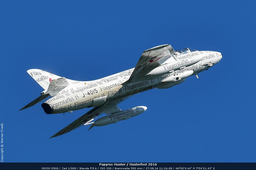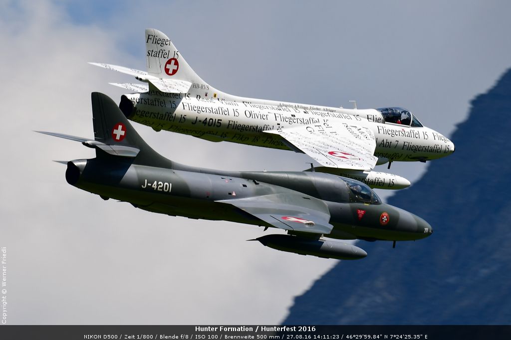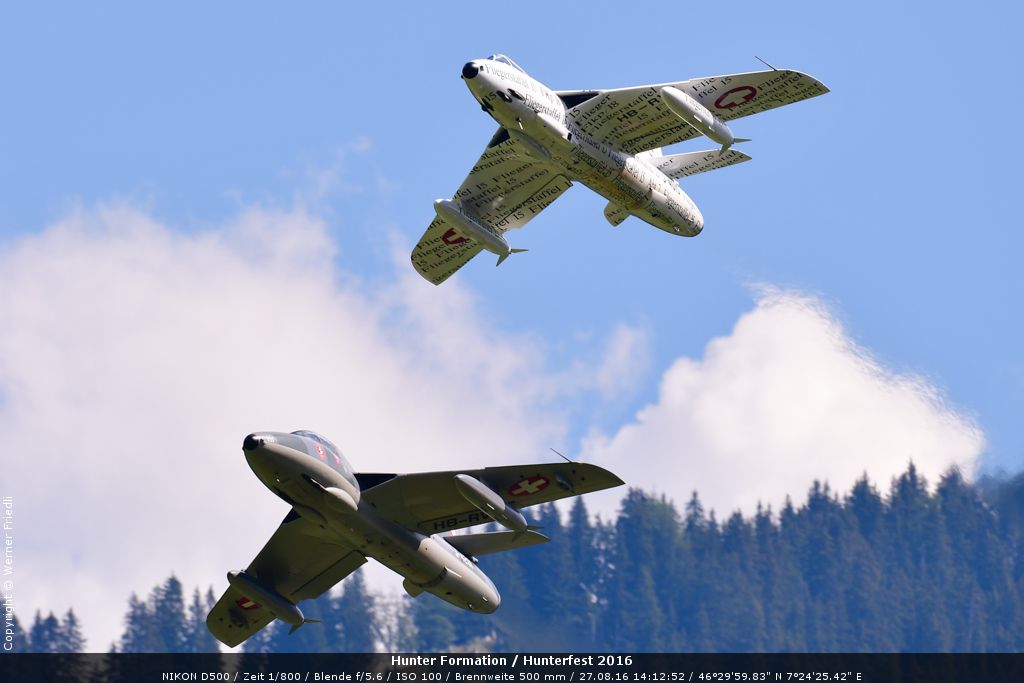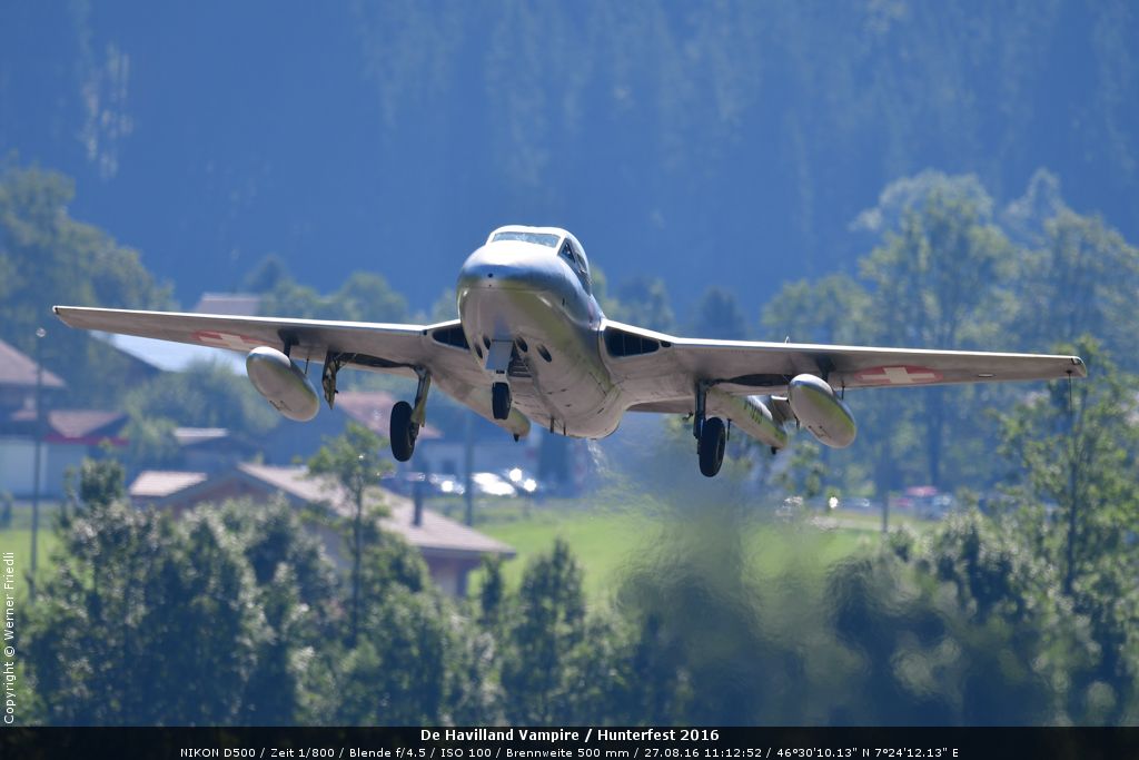 Am 27. August 2016 fand schon traditionell das Hunterfest in St. Stephan im Obersimmental statt. Bei sommerlichen Temperaturen über 30°C und Sonnenschein den ganzen Tag konnte man sich als Fotograf nur so freuen auf die nahen Vorbeiflüge der alten Jets.