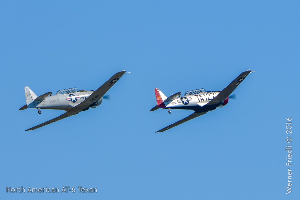 Dann wurden zuerst bei paar Flugzeuge aus der Schweiz vorgeflogen, so eine Messerschmitt Taifun, eine Dewoitine D-26 und eine EKW C-3605. Danach gab es die Tora!, Tora!, Tora! – Vorführung mit drei North American T-6 Texan und danach durfte noch eine Texan, als Mitsubishi Zero-Sen verkleidet, die bullige Grumman Avenger von Charles Trachsel jagen.
