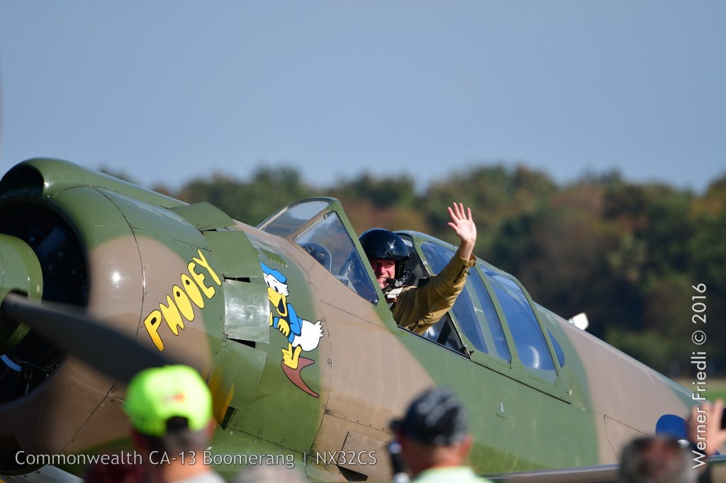 Danach folgten die Displays von verschiedenen Warbirds, so die P-51D Mustang, eine Yak-3 und als absolutes Highlight eine Commonwealth Boomerang. Die Boomerang war das erste Kampfflugzeug, welches in Australien entwickelt und gebaut wurde, natürlich für die australische Luftwaffe. So eine Maschine war in Europa schon lange nicht mehr zu sehen. Jetzt muss man also nicht mehr nach Australien reisen, um eine Boomerang zu sehen!