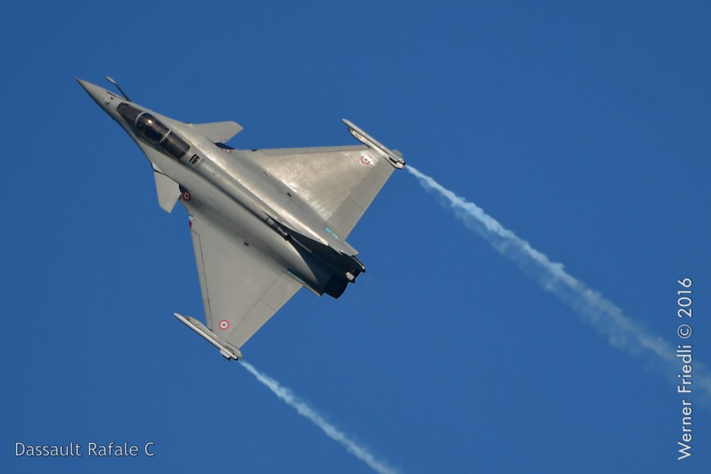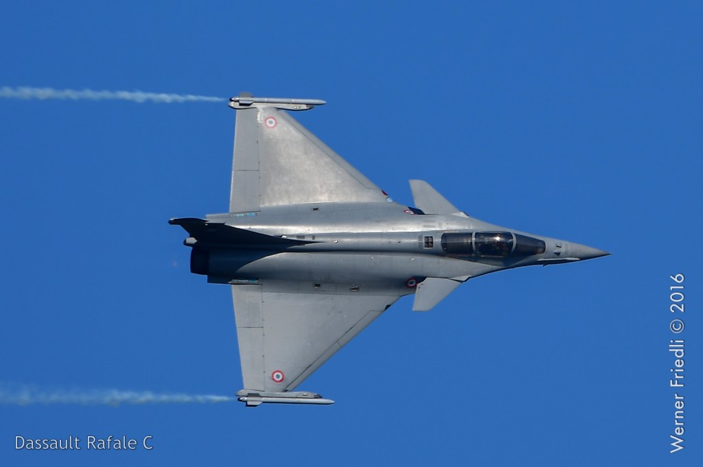 Ca. um 16:40 Uhr zeigte sich dann auch noch die Dassault Rafale aus St. Dizier auf dem Flugplatz Mulhouse. Ich gebe es ganz offen zu, zuerst dachte ich, der Pilot der Rafale habe sich wohl beim Fluggelände vertan. Der Abstand zum Publikum war so gross, dass nicht einmal das Nachbrennergeräusch richtig laut zu hören war. Offensichtlich bin ich als Besucher von Airshows in der Schweiz anderes gewohnt, denn eine solche Entfernung bei einem Jet-Display war mir bisher unbekannt.