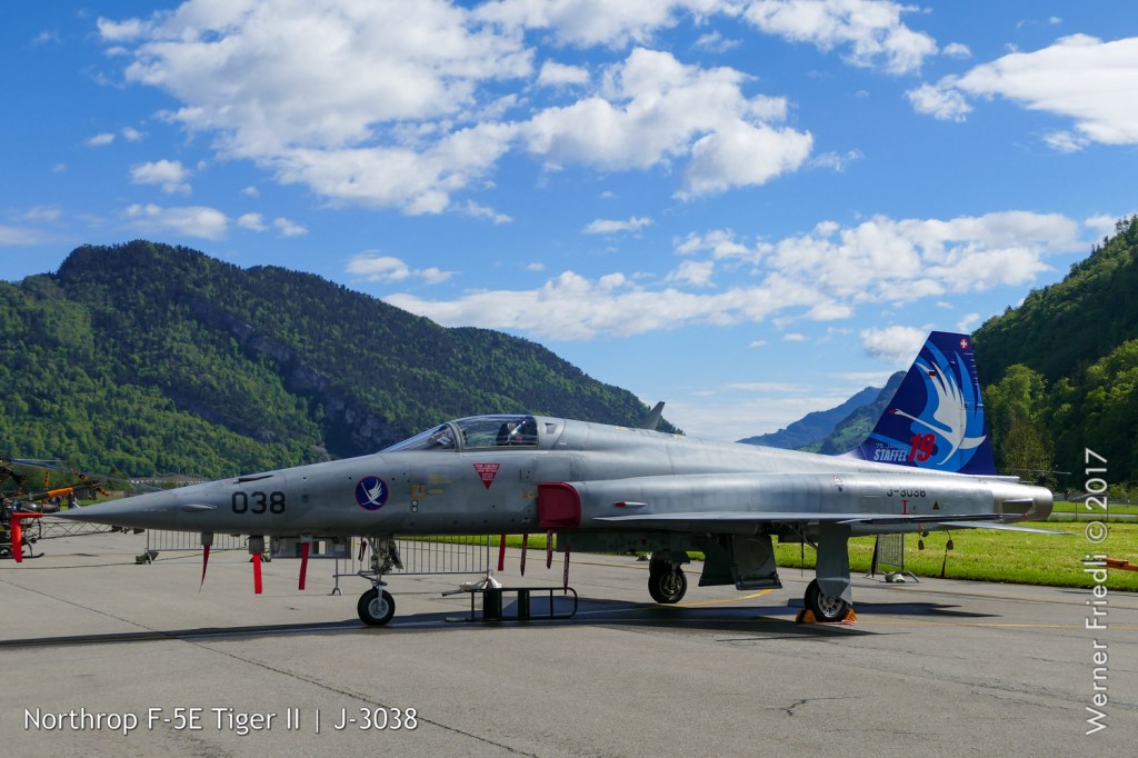 Da sich die Northrop F-5E Tiger mit der taktischen Kennung J-3019 sich nicht mehr im Inventar der Schweizer Luftwaffe befand, wurde die J-3038 (Bezug auf das Gründungsjahr der Staffel 1938) als Staffelmaschine der «Swans» genannten Staffel verwendet. Die Fliegerstaffel 19 war lange Zeit in Alpnach stationiert.