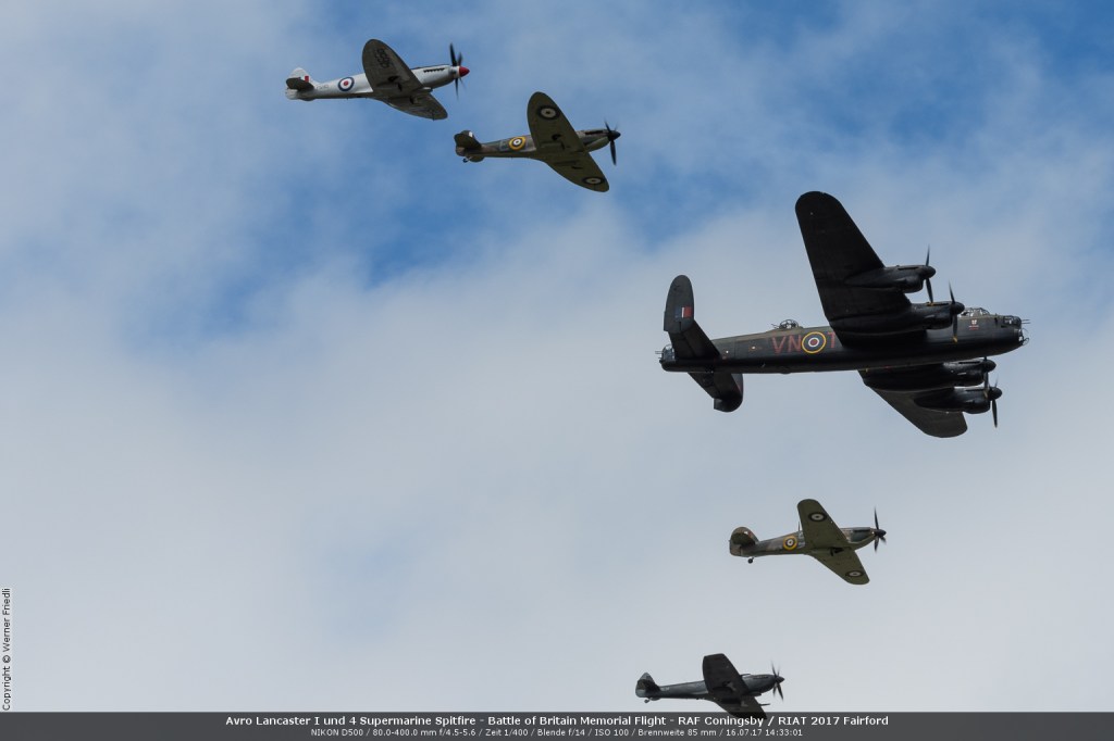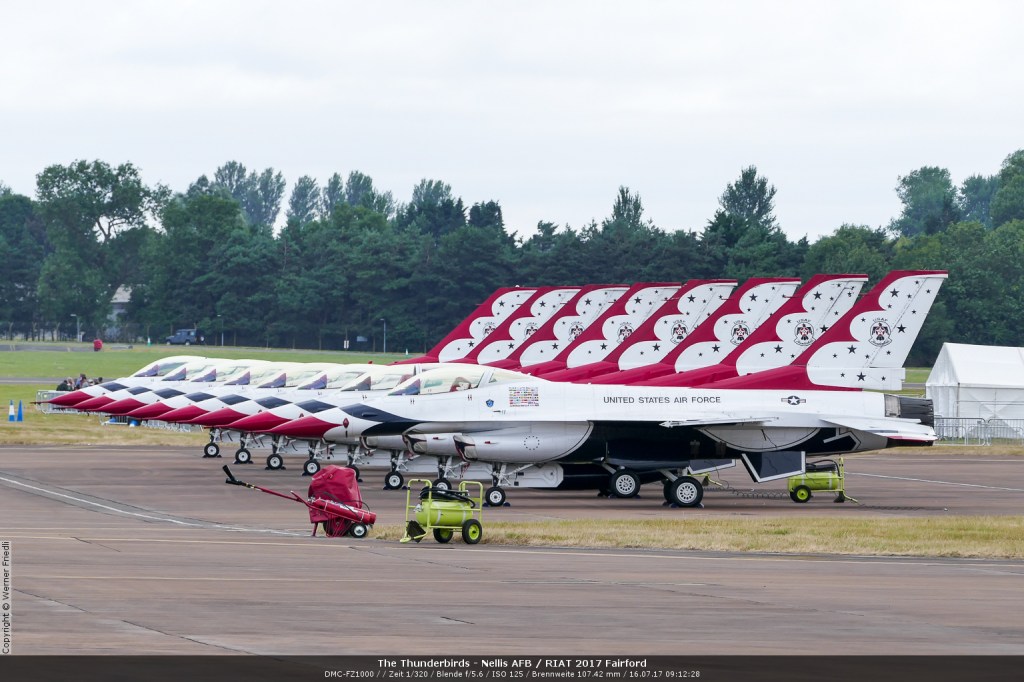 Diesmal feierte man gleich zwei Ereignisse: Der 70-igste Geburtstag der US Air Force und 60 Jahre Battle of Britain Memorial Flight (BBMF). Entsprechend kam da ein umfangreiches, internationales Programm zusammen. Im Mittelpunkt standen natürlich die Thunderbirds und die Red Arrows durften auch nicht fehlen. Die Patrouille Suisse war ebenfalls zu Gast und behauptete sich ganz gut mit ihrer Vorführung. Eine B-2 flog auf einer 23 stündigen Tour, direkt aus den USA über den Atlantik zur Airshow. Auch eine Su-27 war am Himmel und im Static zu sehen. Ich will hier aber nicht auf jedes Detail eingehen. Geniesst die Bilder.