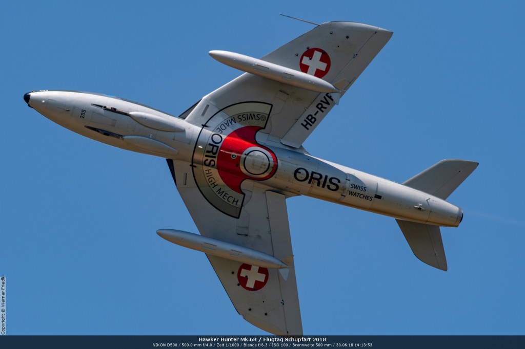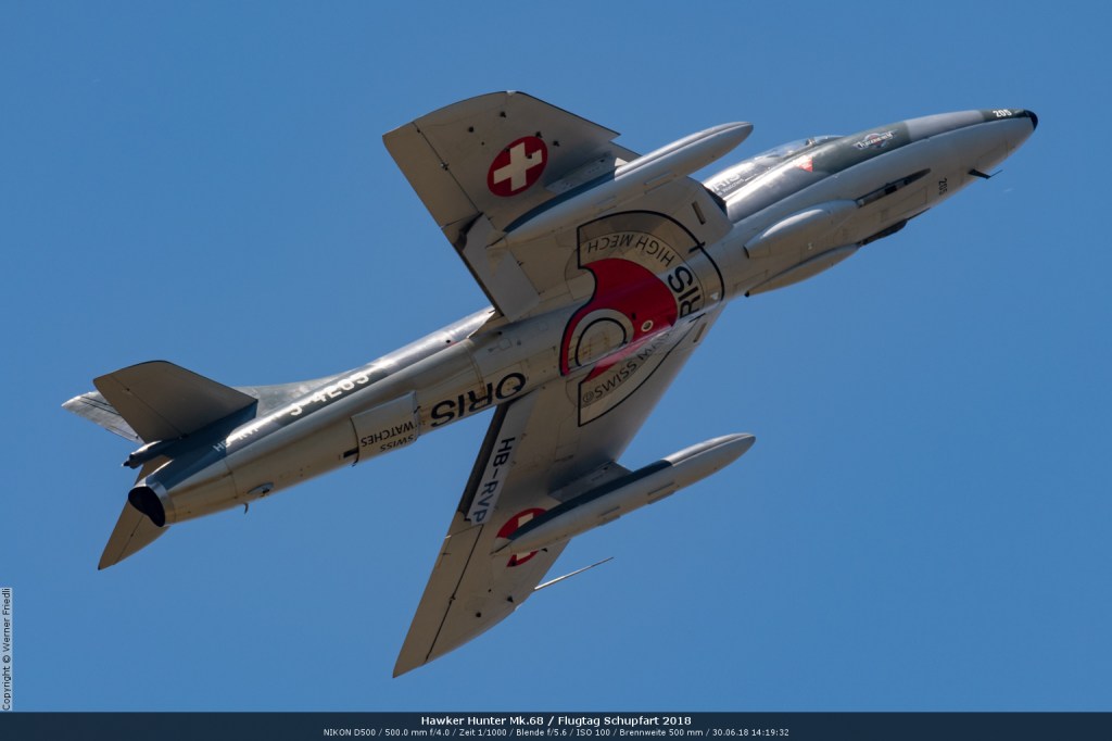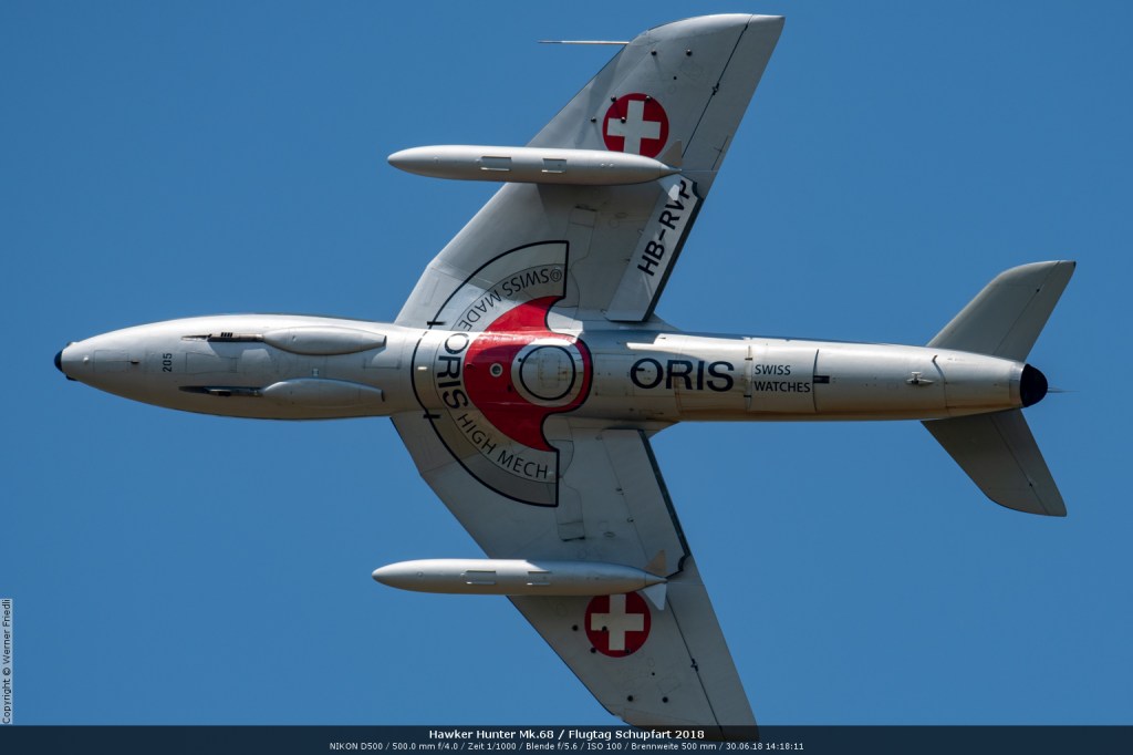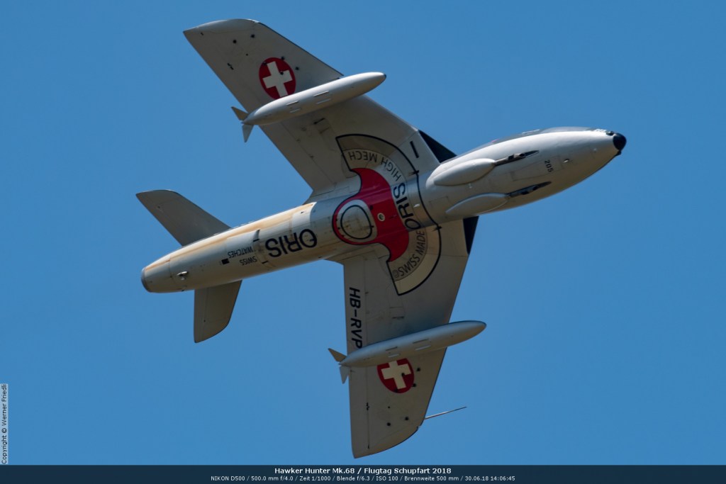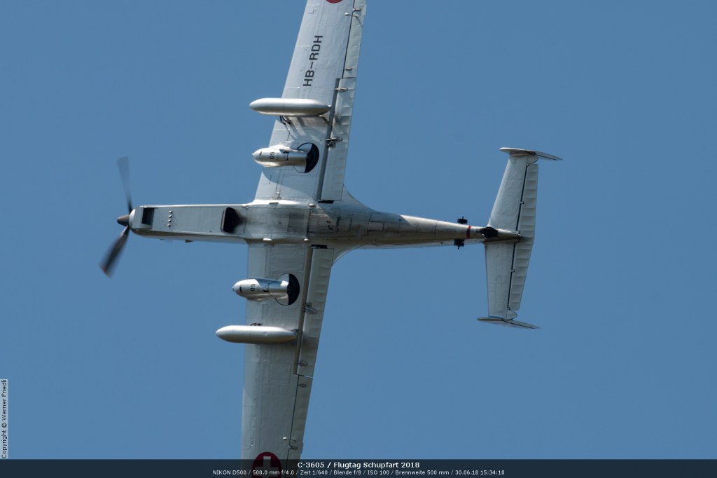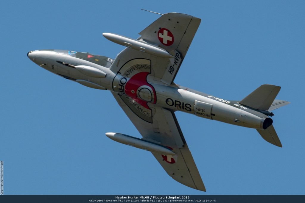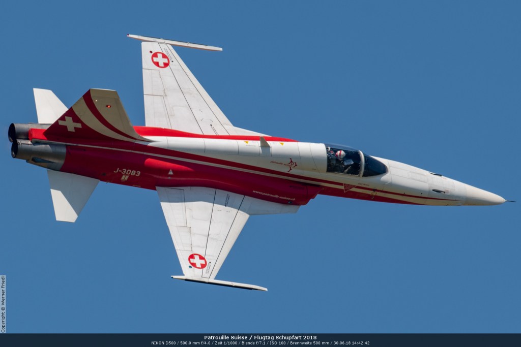 Düsenjets, Kunstflugstaffeln und Warbirds waren angesagt. Dazu Motorkunstflug, sowie Segel- und Modellflug. Für mich war die Vorführung der NA P-51D Mustang See me later – 44-72773 der Höhepunkt der Displays. Die Maschine hat den Besitzer im Jahre 2016 gewechselt und wird seither deutlich dynamischer und fotogener vorgeflogen. Nachdem ich die Maschine in Ecuvillens noch auf der Anreise gesehen hatte, wollte ich mir dieses schöne Sujet nicht entgehen lassen. Die Vorführung war denn auch erstklassig.