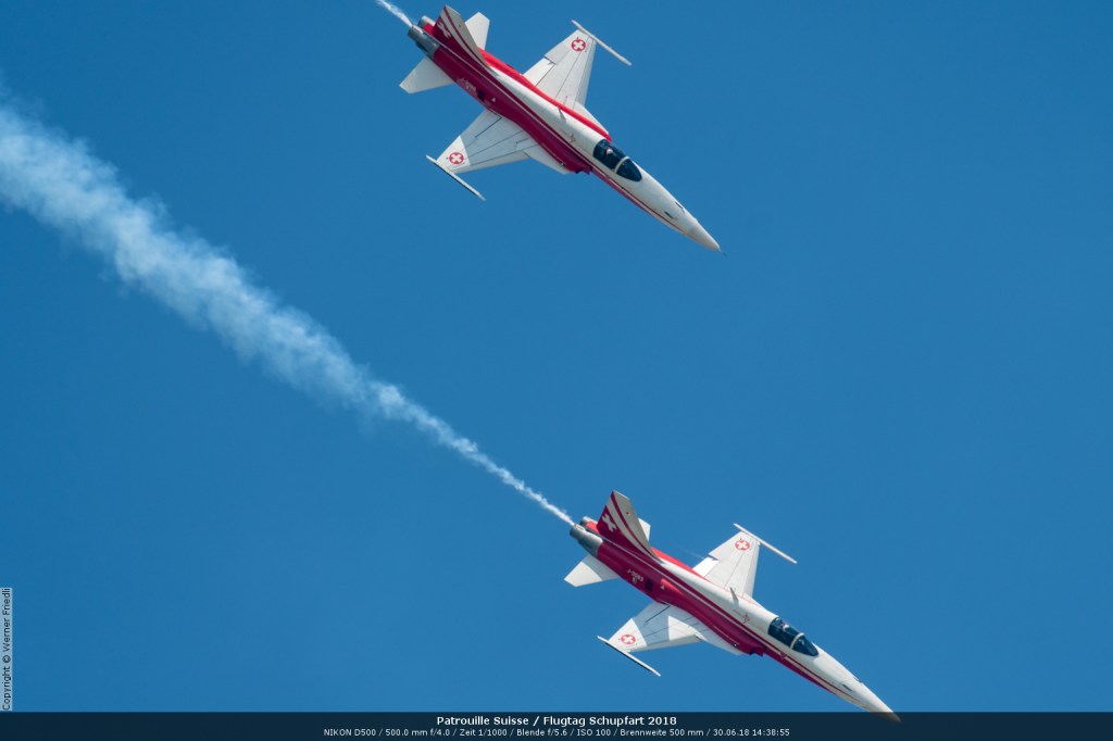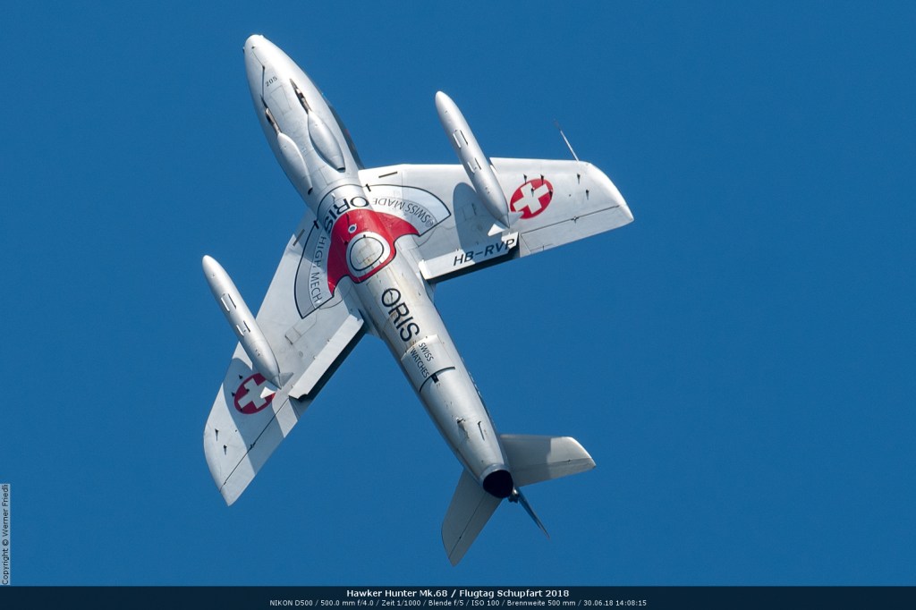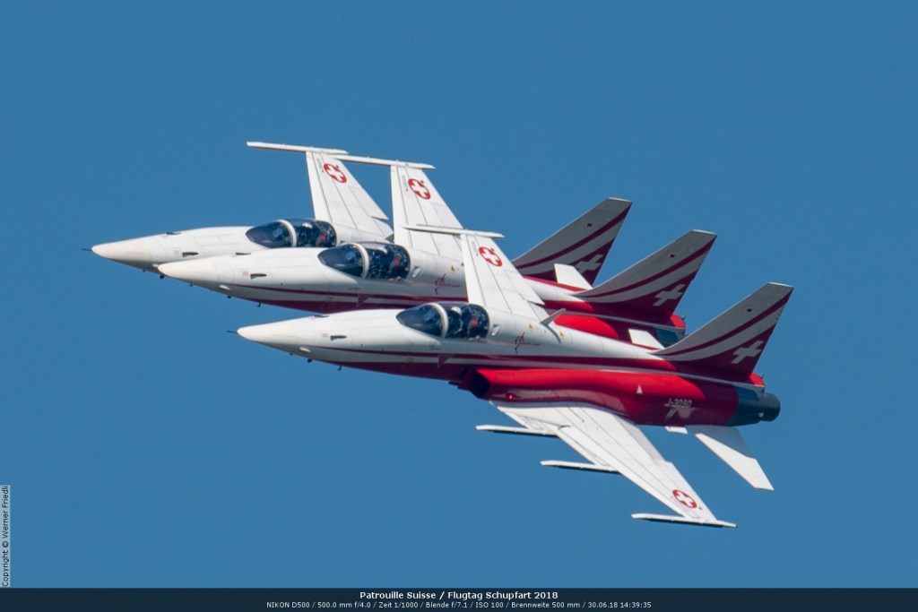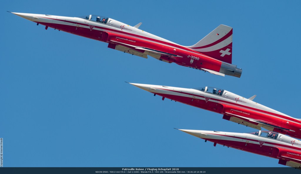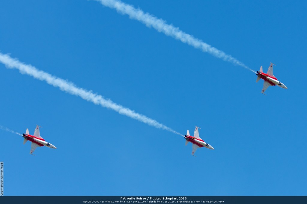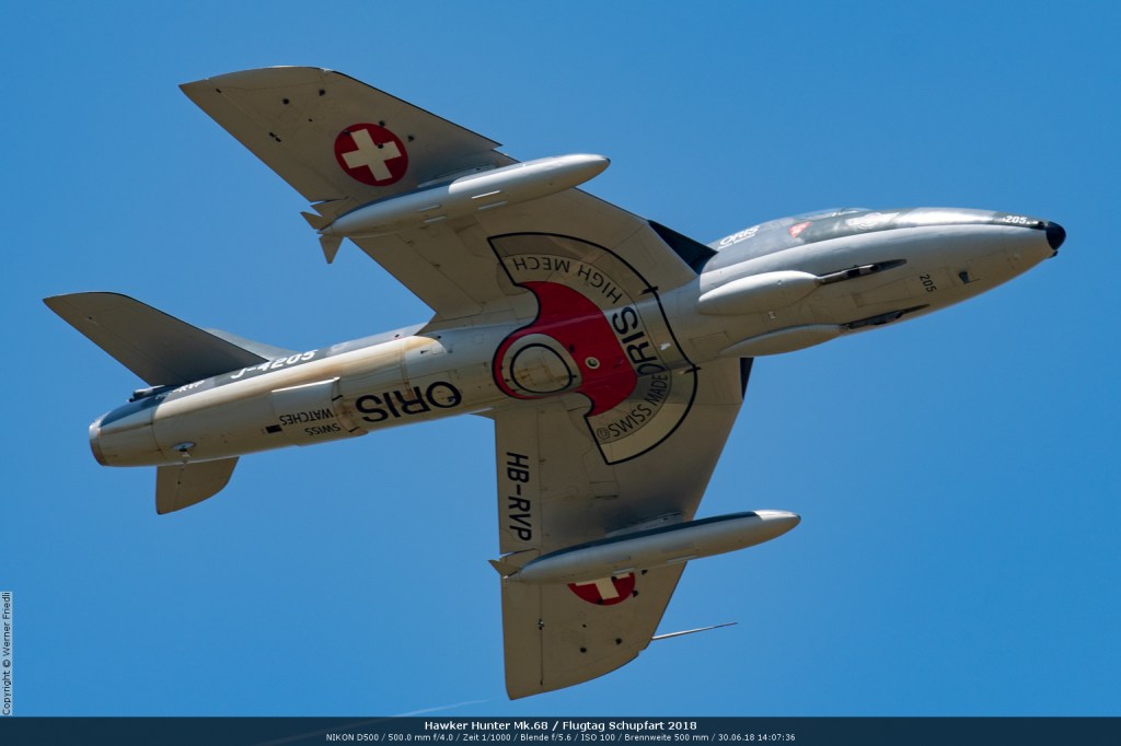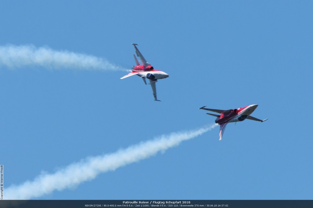 Düsenjets, Kunstflugstaffeln und Warbirds waren angesagt. Dazu Motorkunstflug, sowie Segel- und Modellflug. Für mich war die Vorführung der NA P-51D Mustang See me later – 44-72773 der Höhepunkt der Displays. Die Maschine hat den Besitzer im Jahre 2016 gewechselt und wird seither deutlich dynamischer und fotogener vorgeflogen. Nachdem ich die Maschine in Ecuvillens noch auf der Anreise gesehen hatte, wollte ich mir dieses schöne Sujet nicht entgehen lassen. Die Vorführung war denn auch erstklassig.