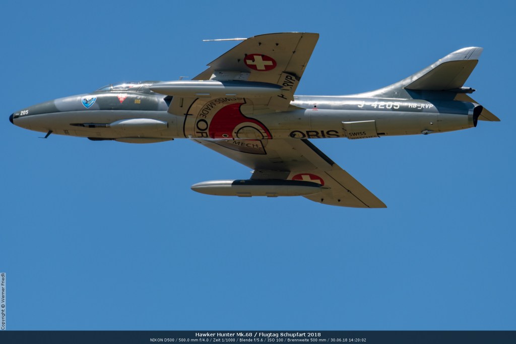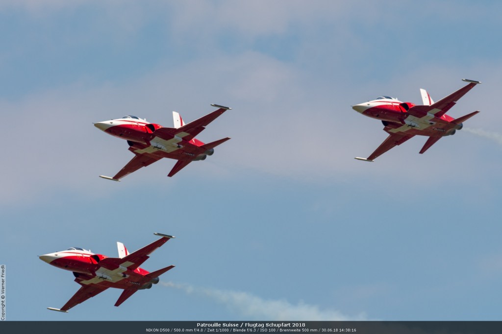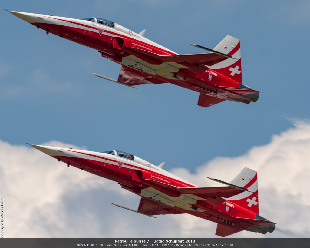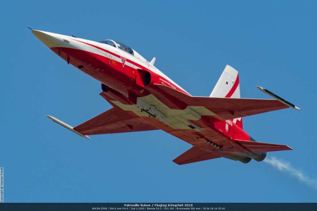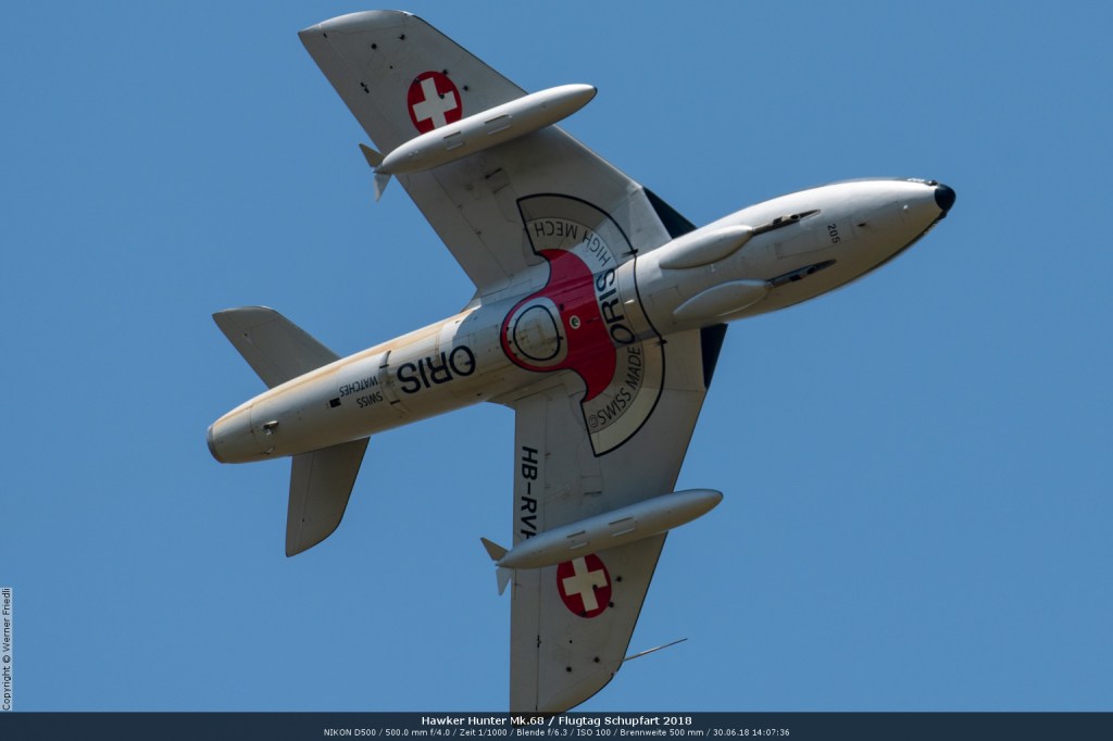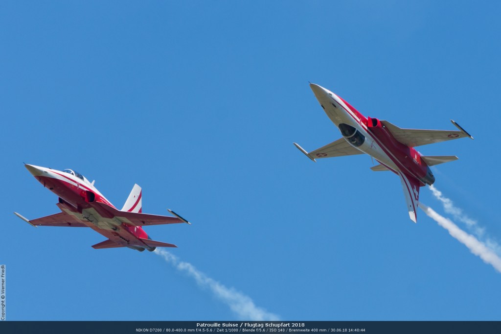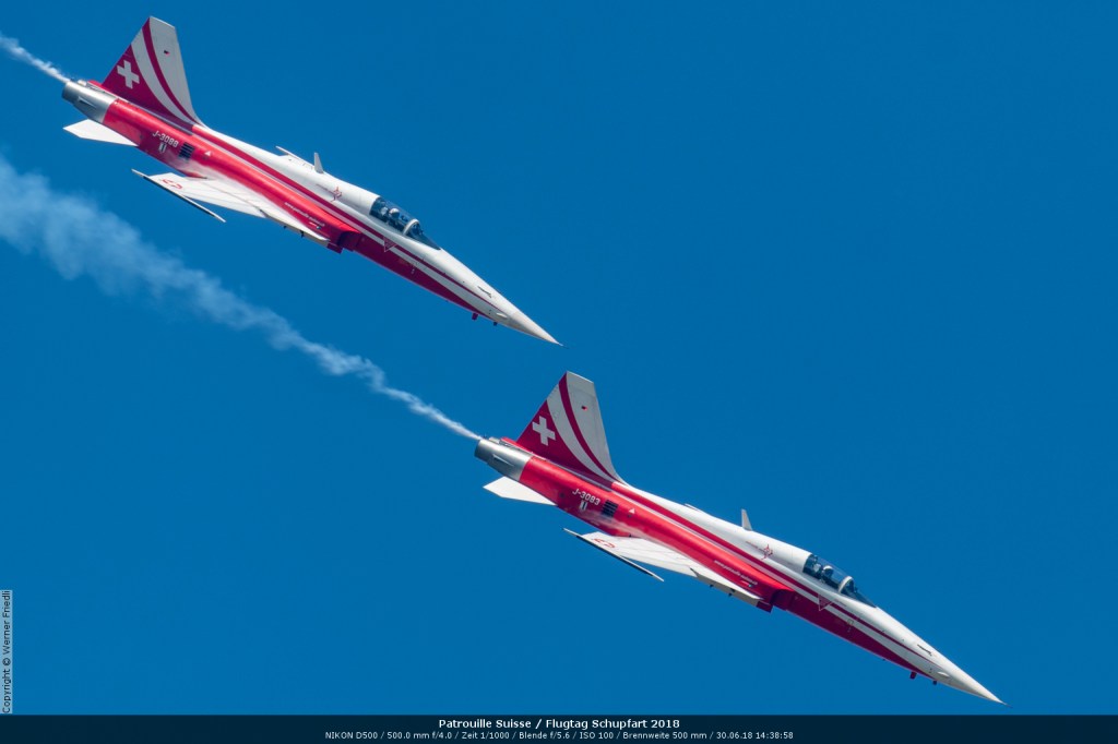 Düsenjets, Kunstflugstaffeln und Warbirds waren angesagt. Dazu Motorkunstflug, sowie Segel- und Modellflug. Für mich war die Vorführung der NA P-51D Mustang See me later – 44-72773 der Höhepunkt der Displays. Die Maschine hat den Besitzer im Jahre 2016 gewechselt und wird seither deutlich dynamischer und fotogener vorgeflogen. Nachdem ich die Maschine in Ecuvillens noch auf der Anreise gesehen hatte, wollte ich mir dieses schöne Sujet nicht entgehen lassen. Die Vorführung war denn auch erstklassig.