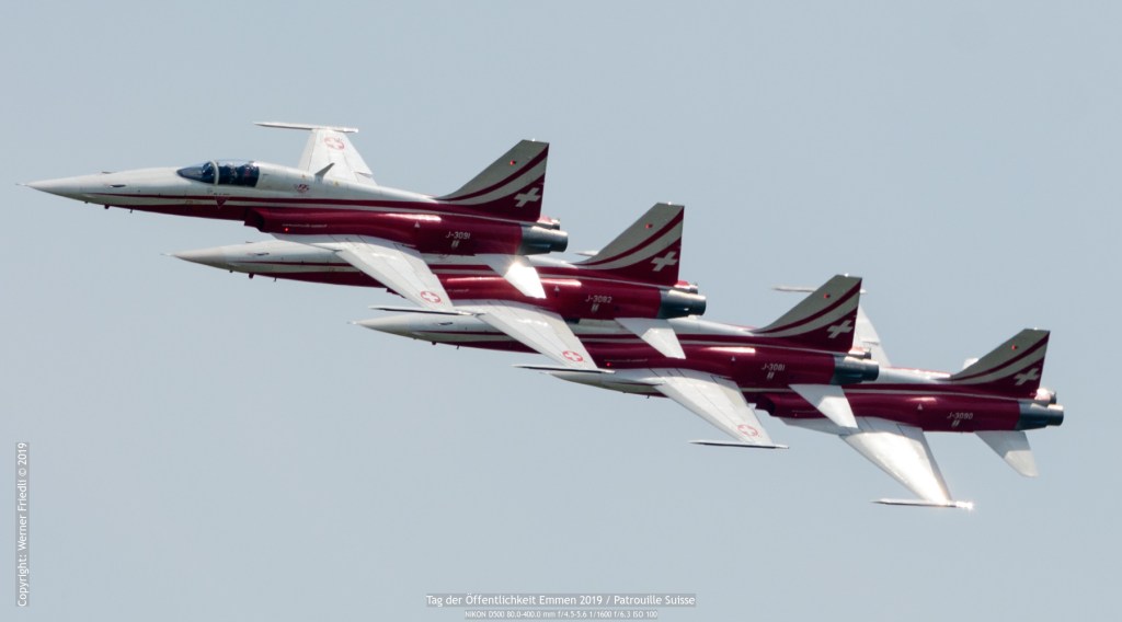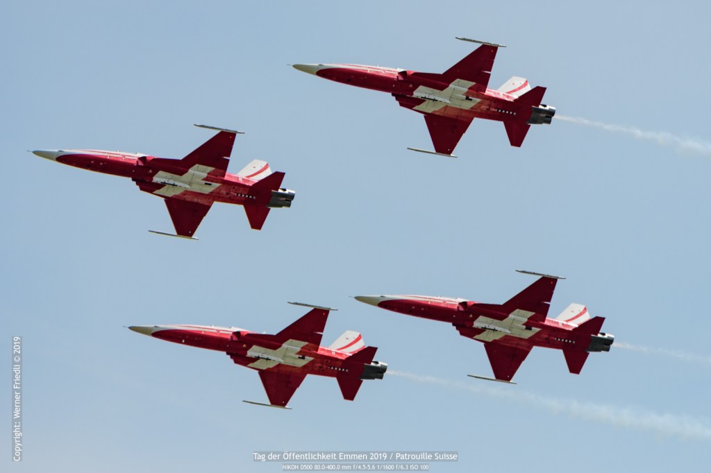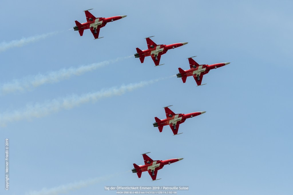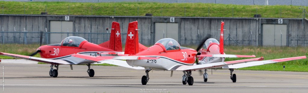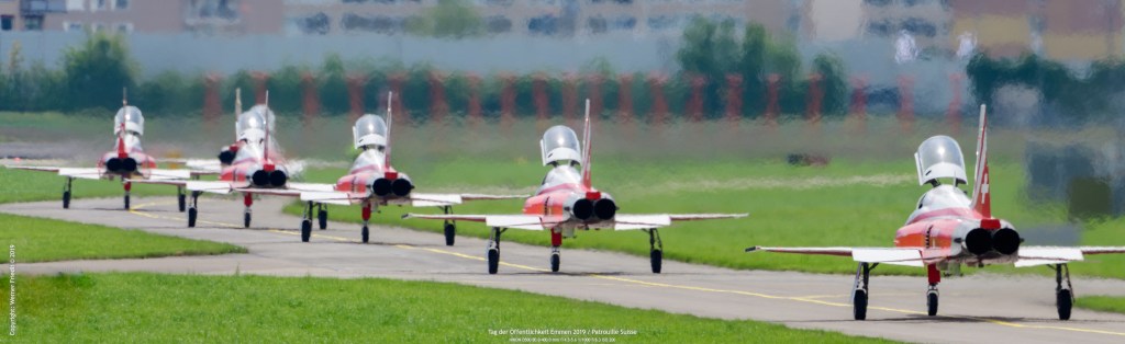 Ich war am Freitag, 24. Mai 2019 in Emmen vor Ort und konnte einen sonnigen Tag in der Zentralschweiz geniessen. Leider herrscht in Emmen im Zuschauerbereich fast während des ganzen Tages Gegenlicht, so dass gute Fotos Mangelware sind. Genossen habe ich vor allem die Vorführung der Patrouille Suisse. Die rotweissen Jets sah ich nun schon eine Weile nicht mehr.
