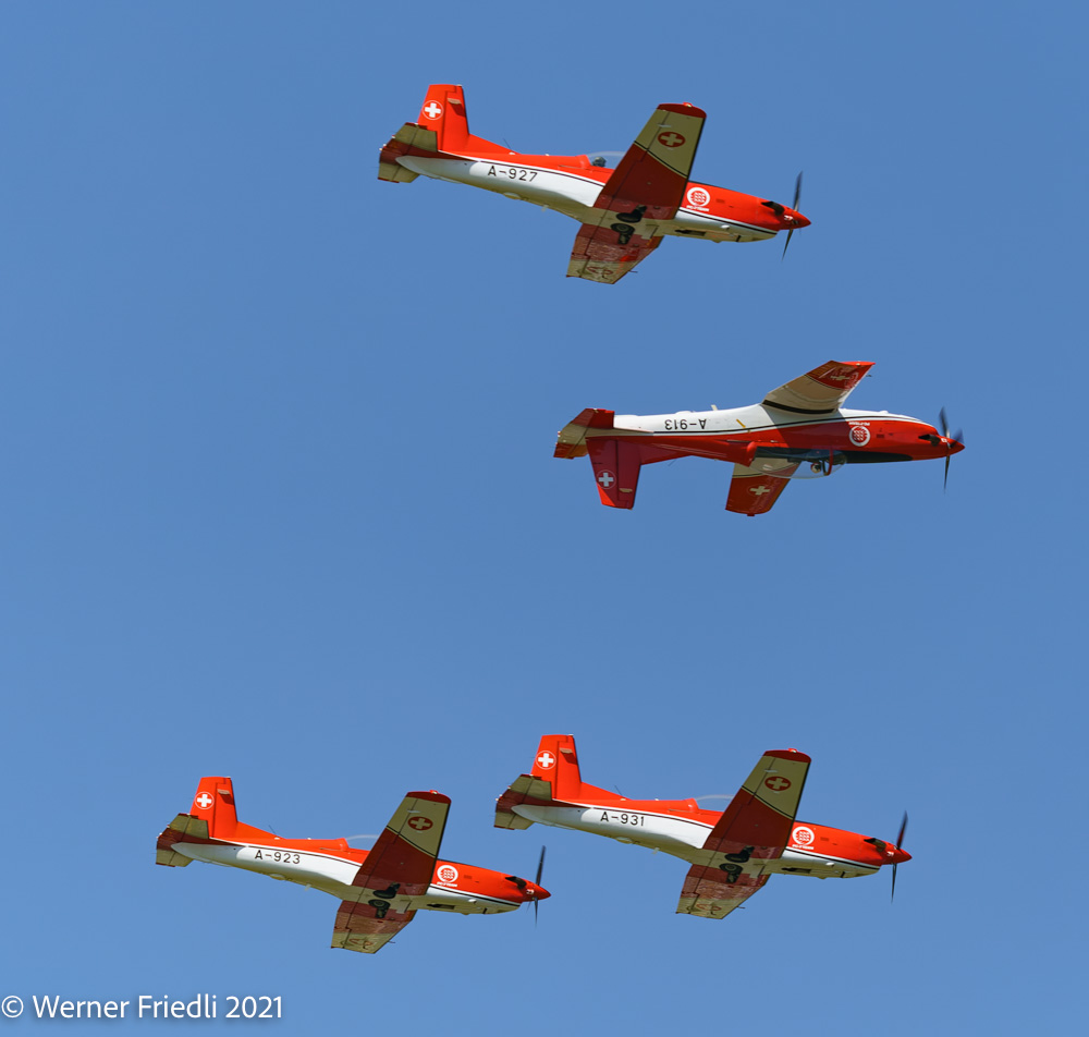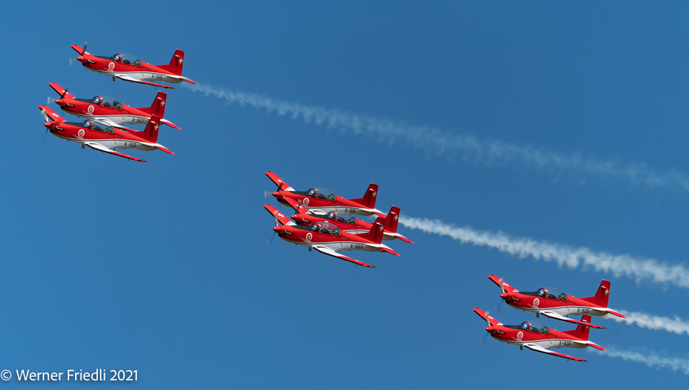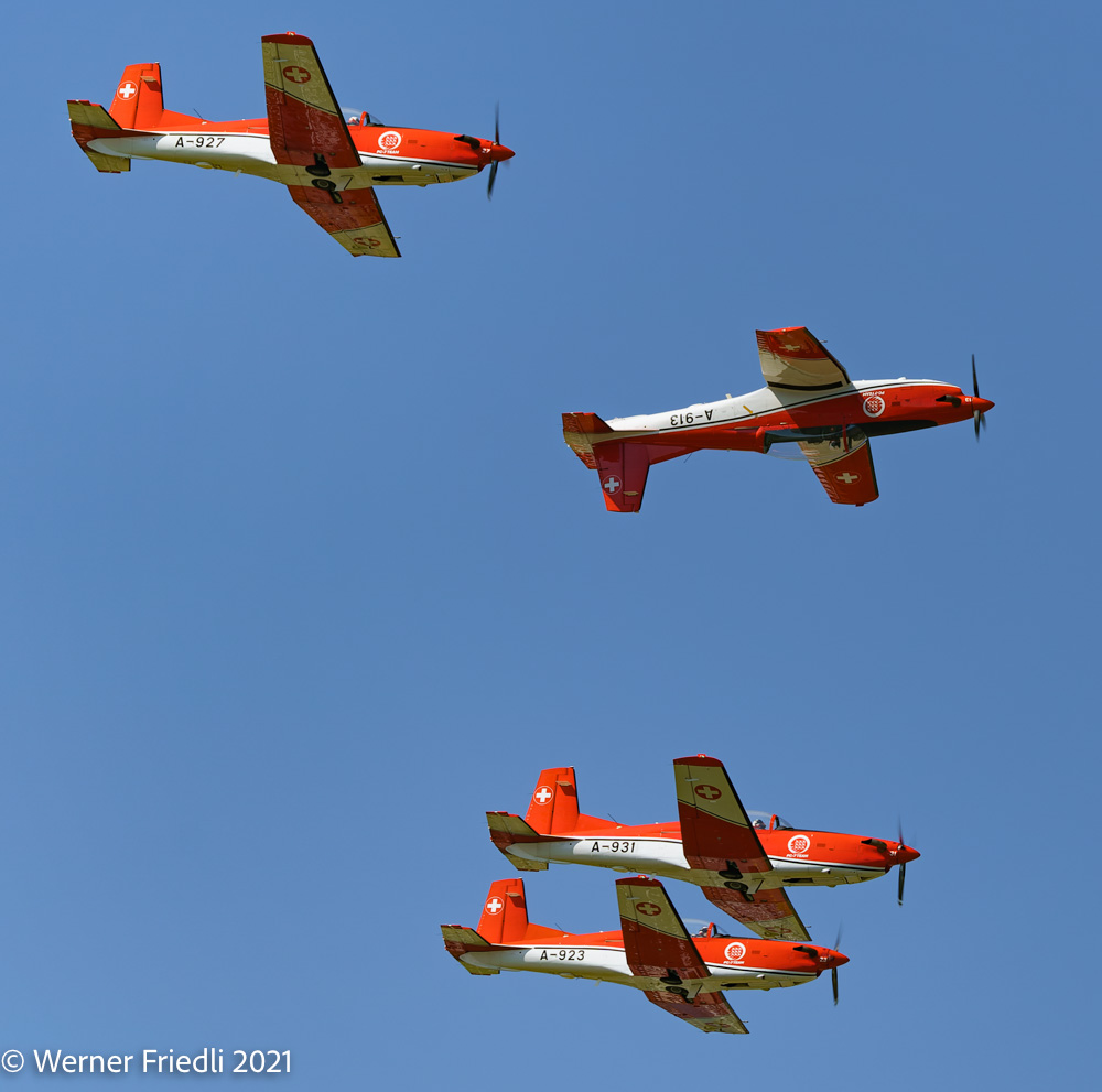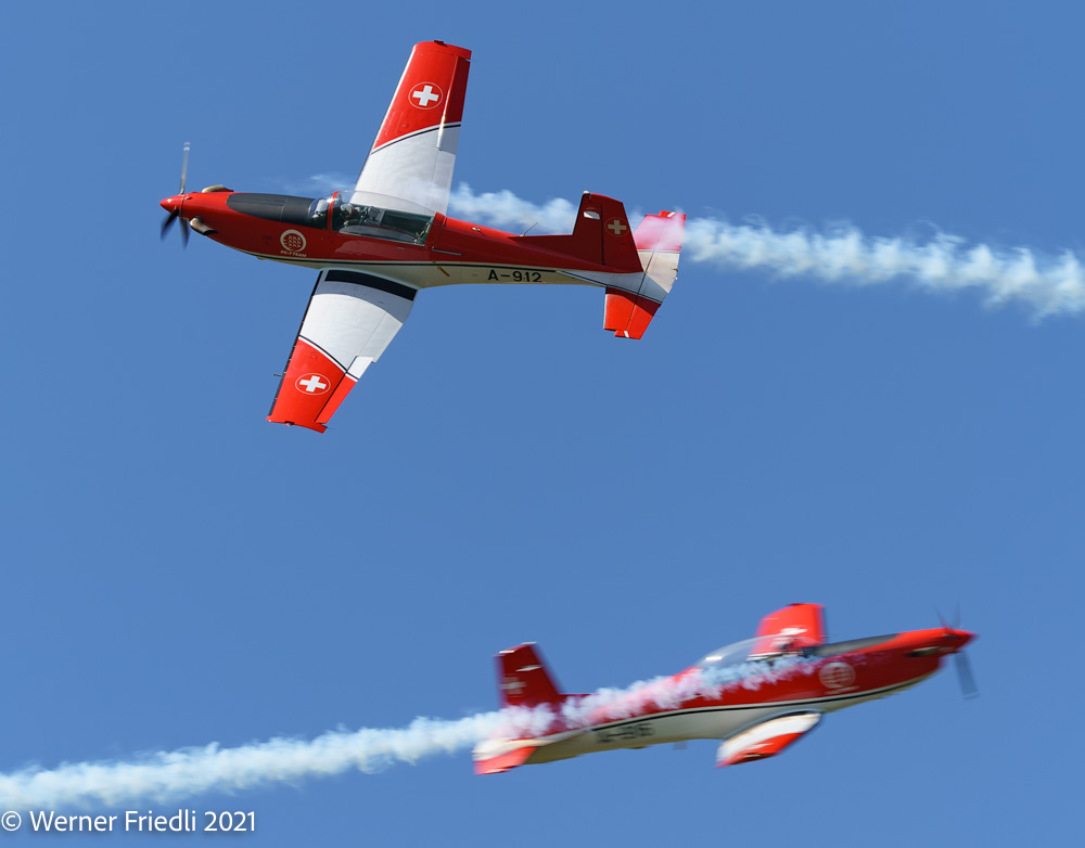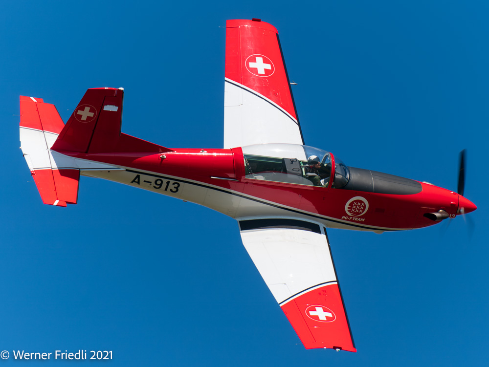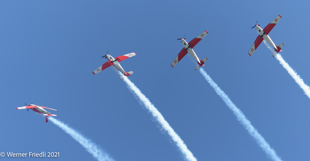 Früher war das PC-7 Team ein seltener Gast in Grenchen. Seit sich das Team entschlossen hat, die jährlichen Trainings an den verschiedensten Standorten in der Schweiz durchzuführen, profitiert auch der Flughafen Grenchen von dieser Neuerung. Bereits am 31. Mai 2021 waren die schnittigen rot-weissen PC-7 am Grenchner Himmel zu bestaunen. Es lohnt sich ab und zu ein Blick in die Facebook-Seite des Teams, denn dort werden die aktuellen Trainings des Teams immer frühzeitig angekündigt.