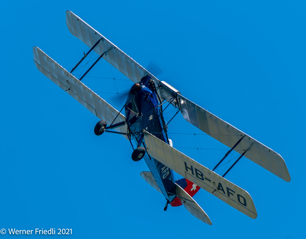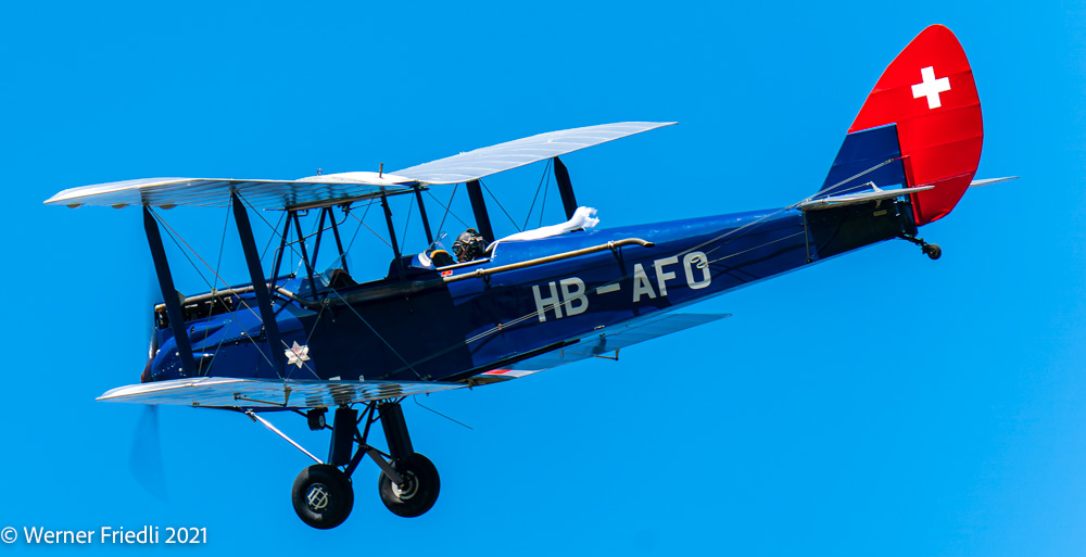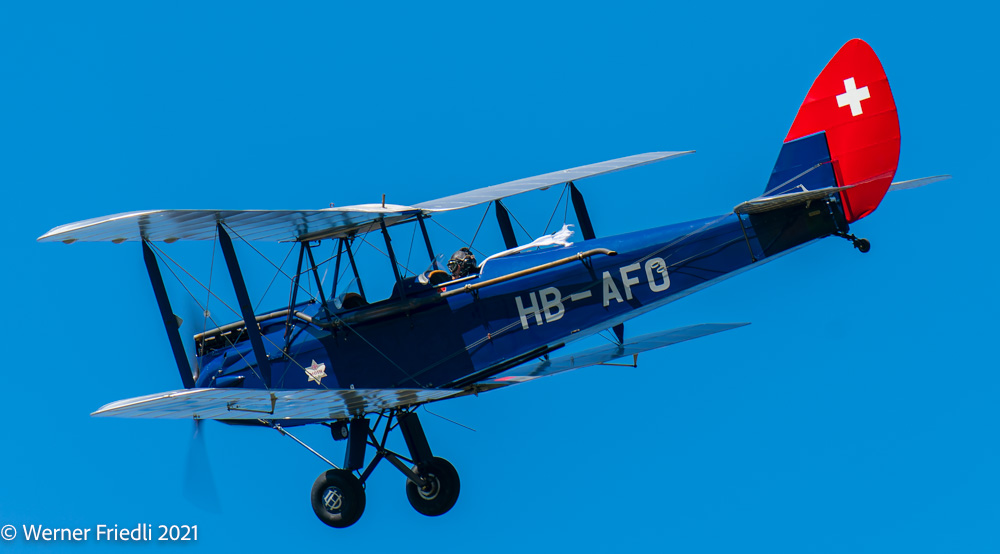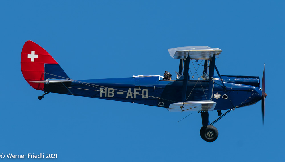 Auch Willy Kämpfer mit seiner De Havilland Gipsy Moth mit Jahrgang 1931 zeigte sich am Grenchner Himmel. Nach der Absage der Flügerchilbi in Bleienbach bei Langenthal, wo die Maschine Dauergast ist mit Auftritten im Flying Display, konnte der schöne Doppeldecker doch noch in der Luft bewundert werden. Das Markenzeichen von Willy Kämpfer ist der weisse Schal, der im Fahrtwind flattert.